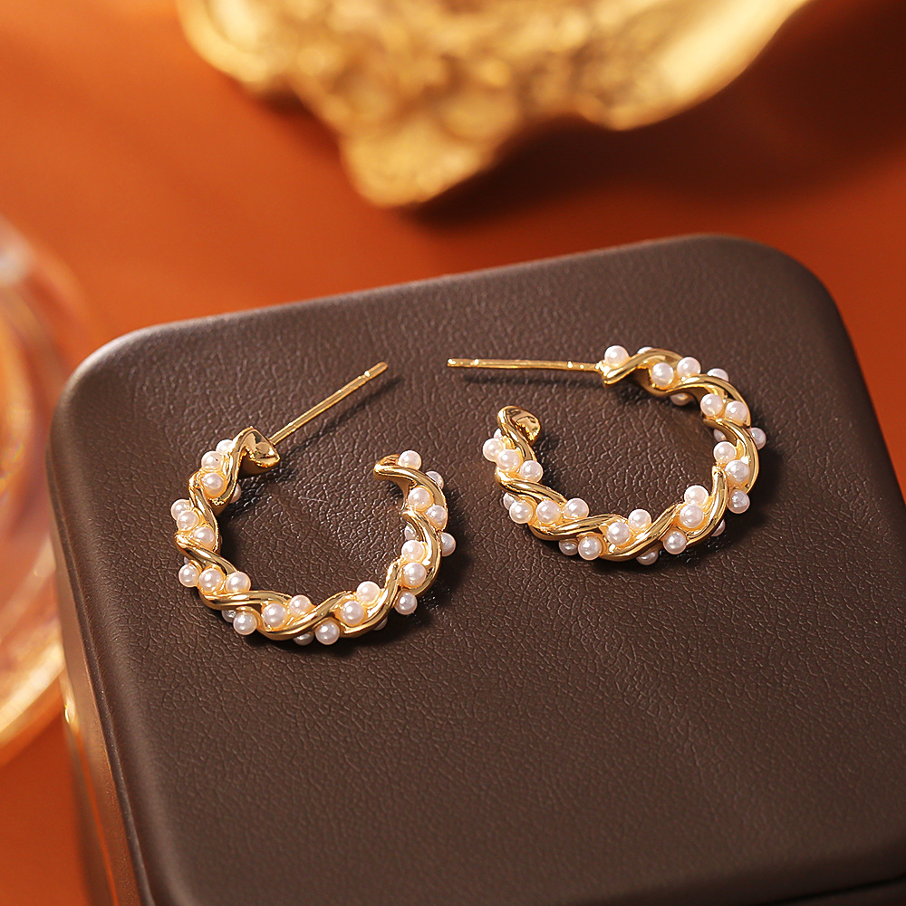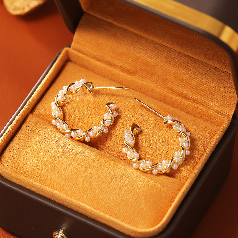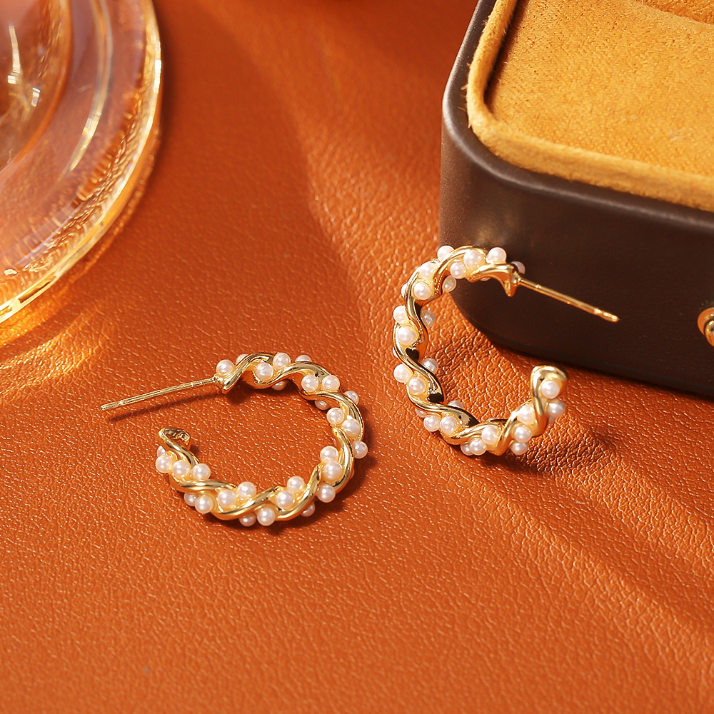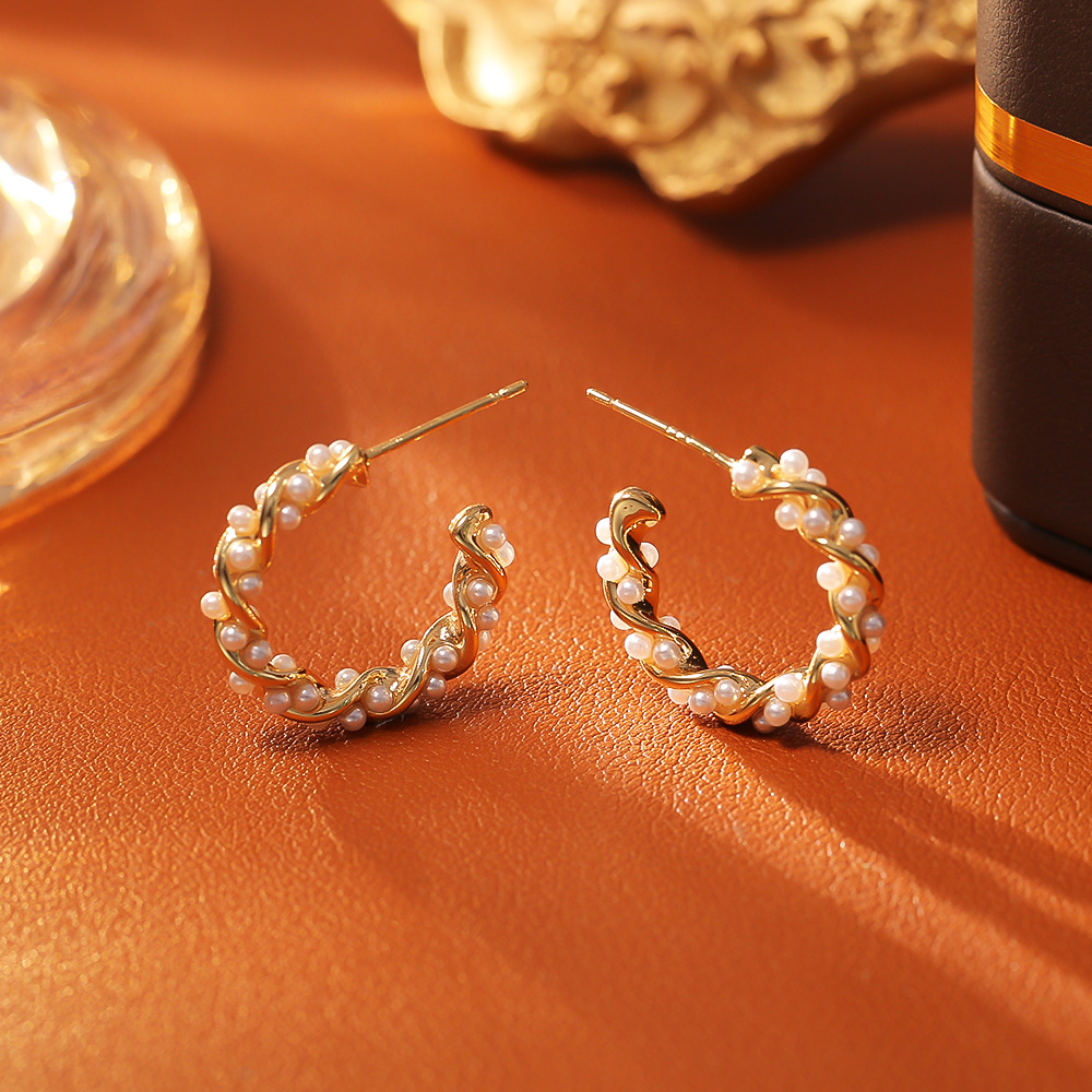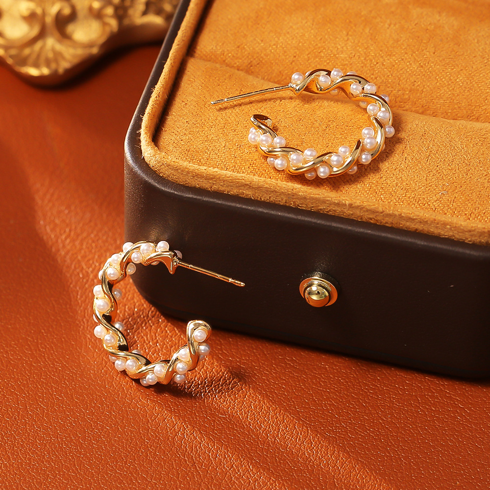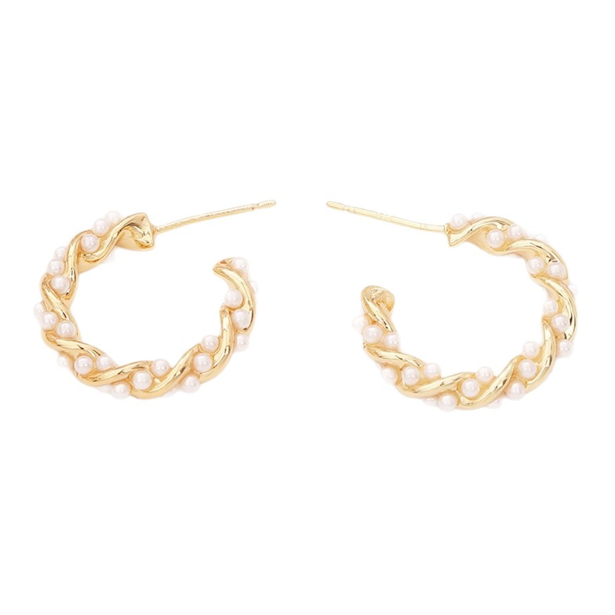 Латуни Стад Серьги, Латунь, с Пластиковая жемчужина, плакированный настоящим золотом, ювелирные изделия моды & Женский, продается Пара