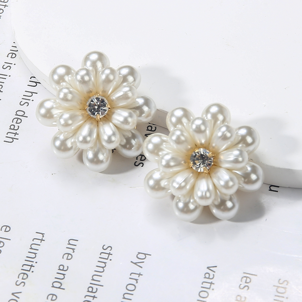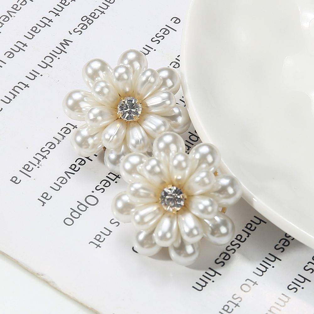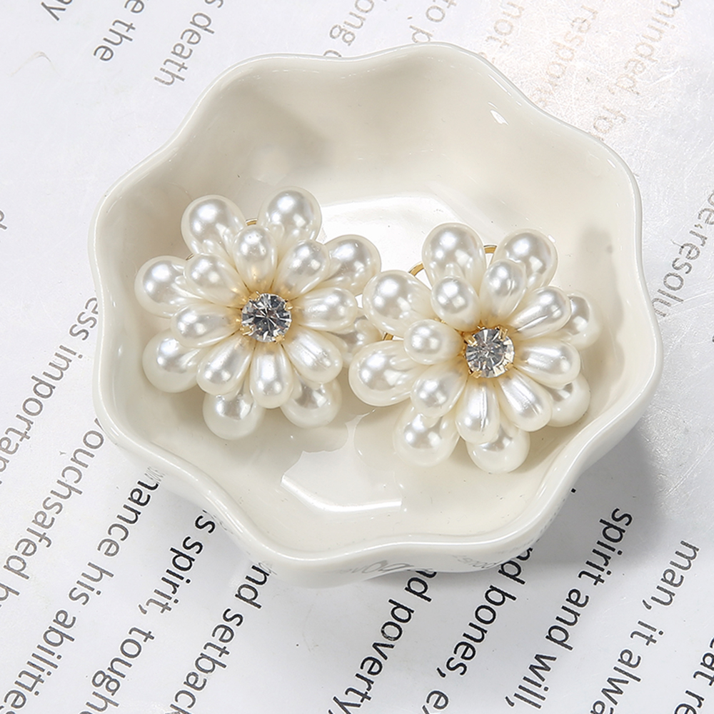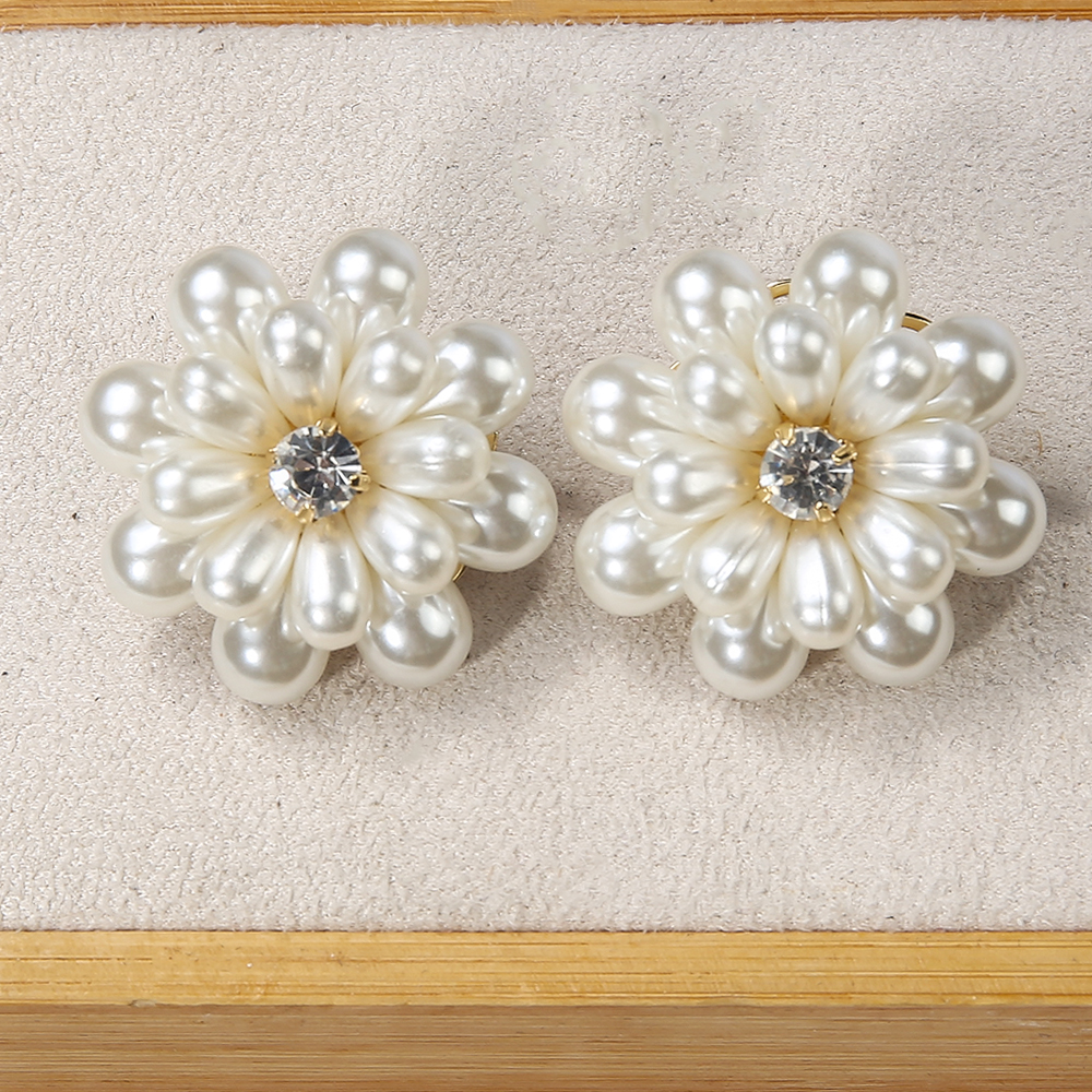 Латуни Стад Серьги, Латунь, с Пластиковая жемчужина, Форма цветка, Другое покрытие, ювелирные изделия моды & со стразами, разноцветный, 30.35x24.6x32.87mm, продается Пара