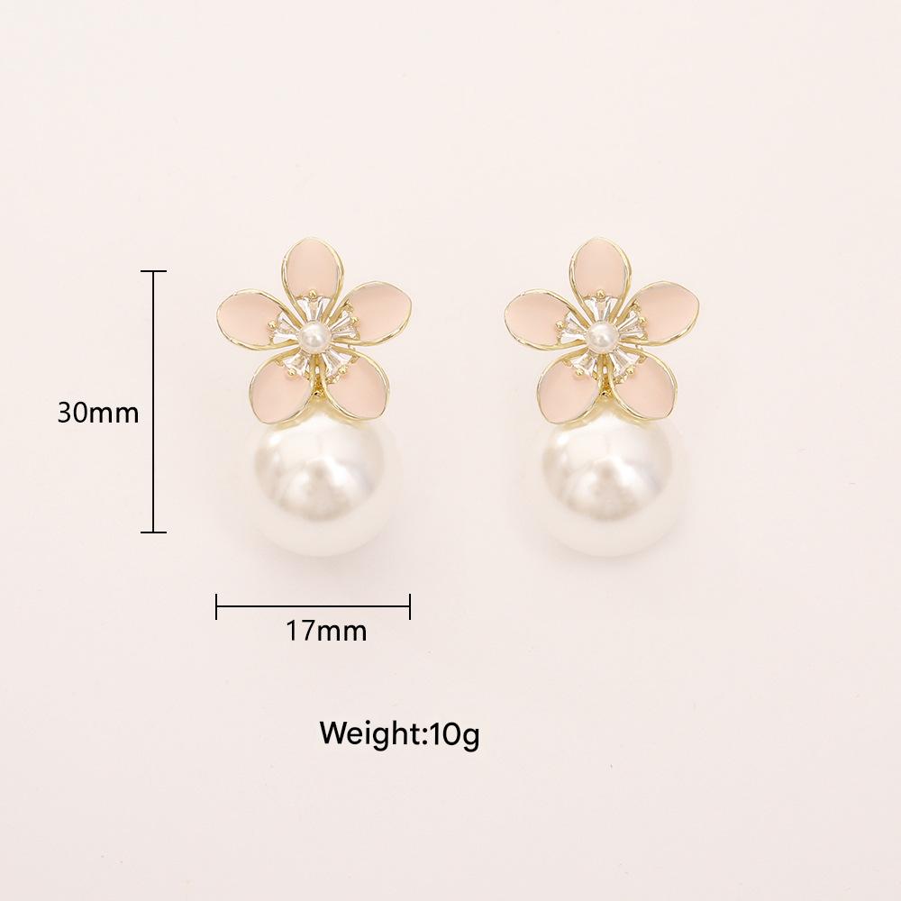 Pink flower pearl stud earrings