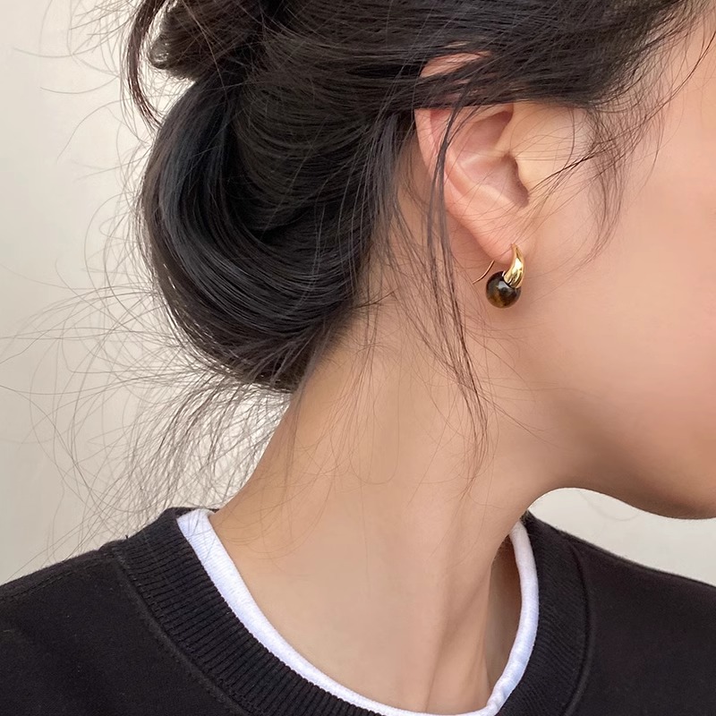 Латуни Стад Серьги, Латунь, с тигровый глаз, Другое покрытие, ювелирные изделия моды, золотой, 10x17mm, продается Пара