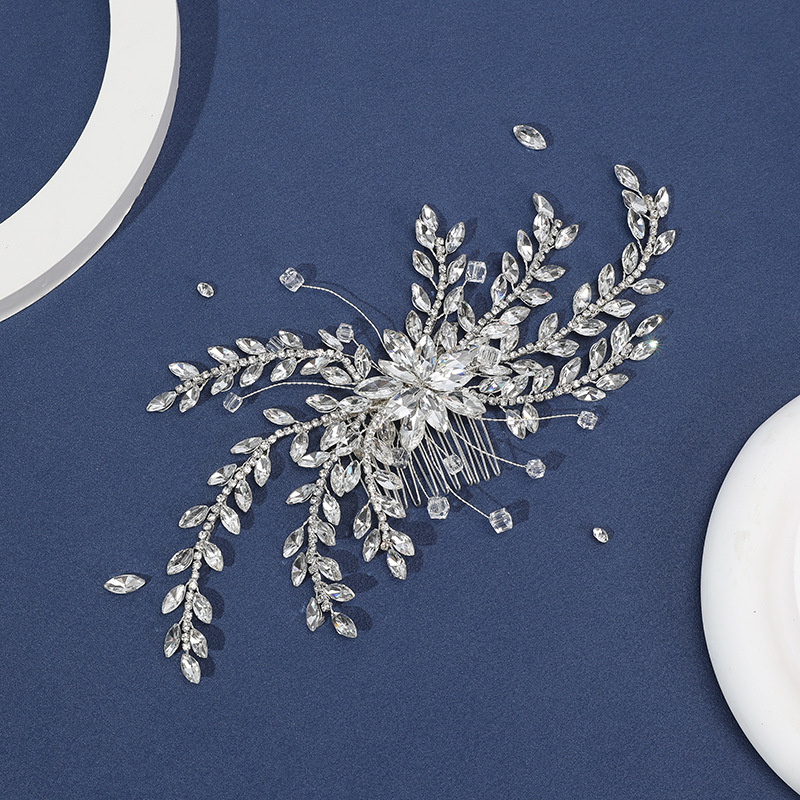 Свадебный Декоративные волосы расческой, цинковый сплав, с Медная проволока & Кристаллы & Кристаллы, Связанный вручную, ювелирные изделия моды & Женский, серебряный, продается PC