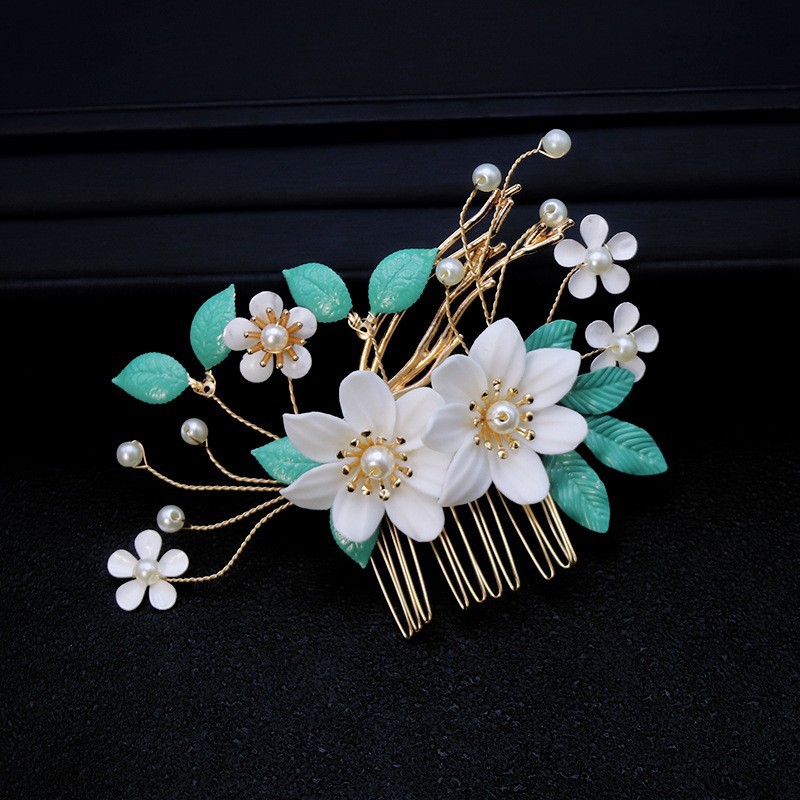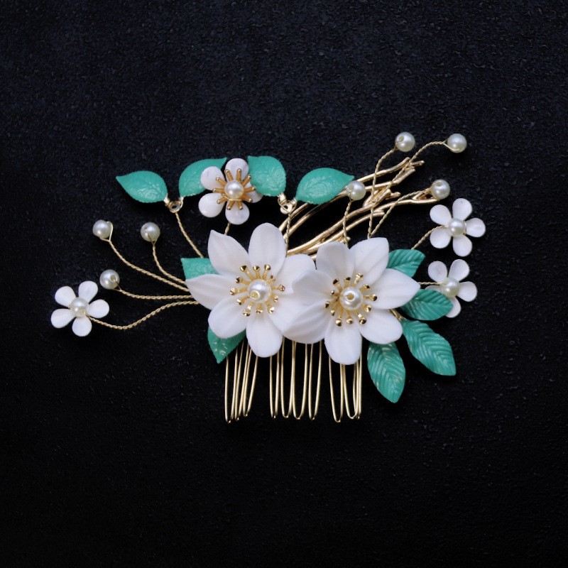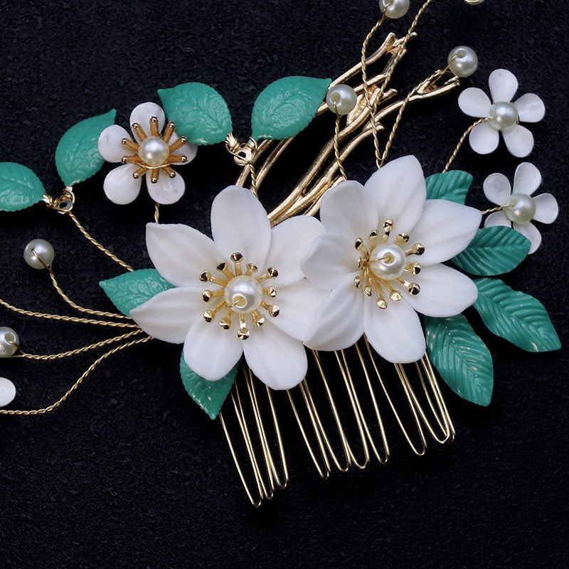 Свадебный Декоративные волосы расческой, Латунь, с Кристаллы & Пластиковая жемчужина & Железо, Другое покрытие, ювелирные изделия моды & свадебный подарок & Женский, белый продается PC