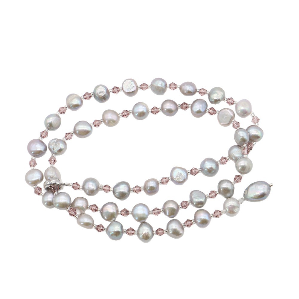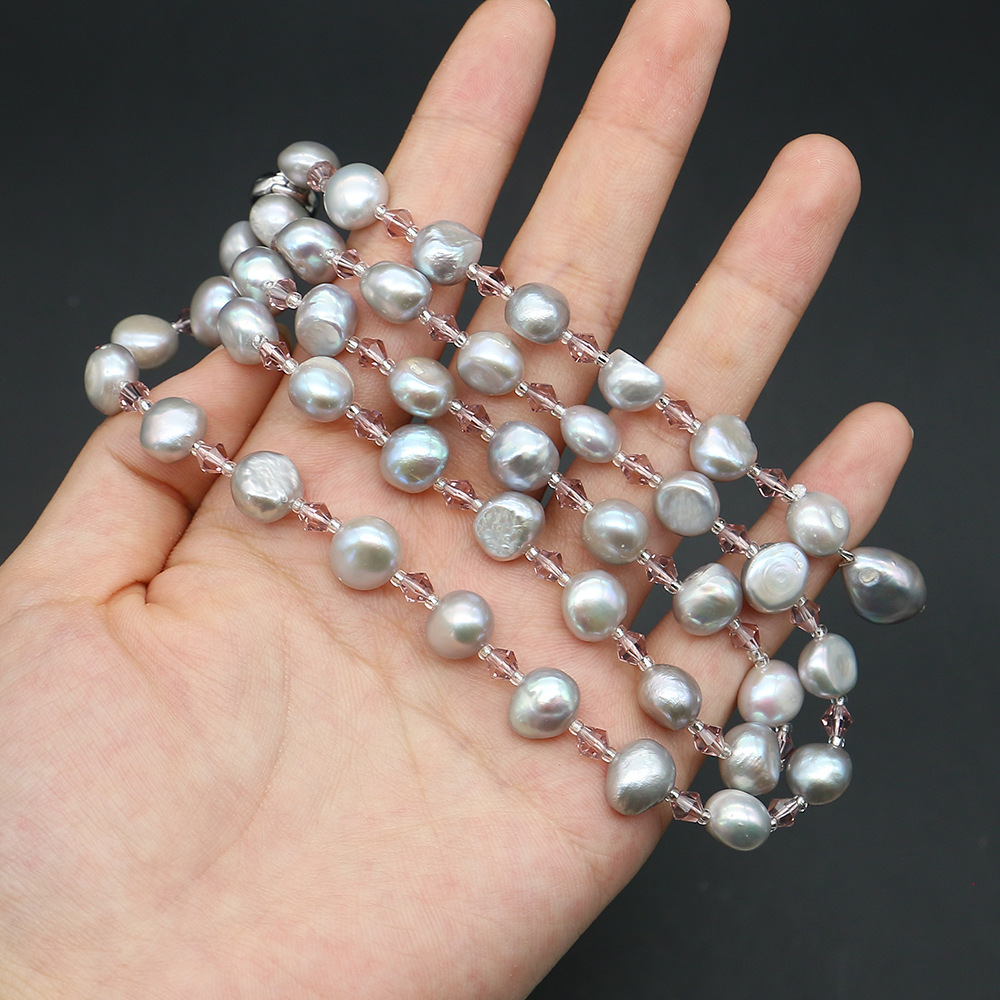 Кристалл свитер пресноводных жемчужное ожерелье, Пресноводные жемчуги, с Кристаллы, Форма картофеля, натуральный, граненый, 7-8mm длина:Приблизительно 47 дюймовый, продается Strand