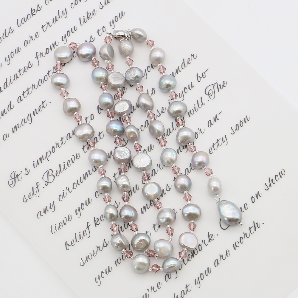 Кристалл свитер пресноводных жемчужное ожерелье, Пресноводные жемчуги, с Кристаллы & Лэмпворк, граненый, разноцветный, 8-13mm  длина:Приблизительно 32 дюймовый, продается Strand