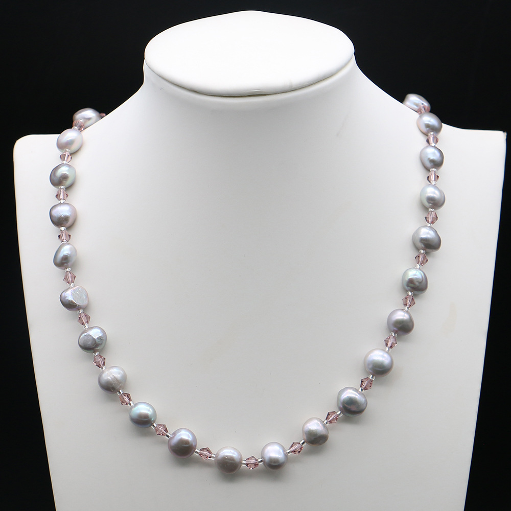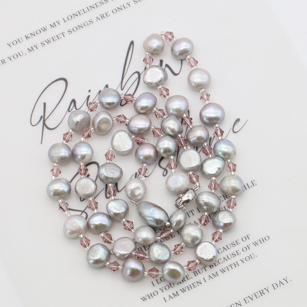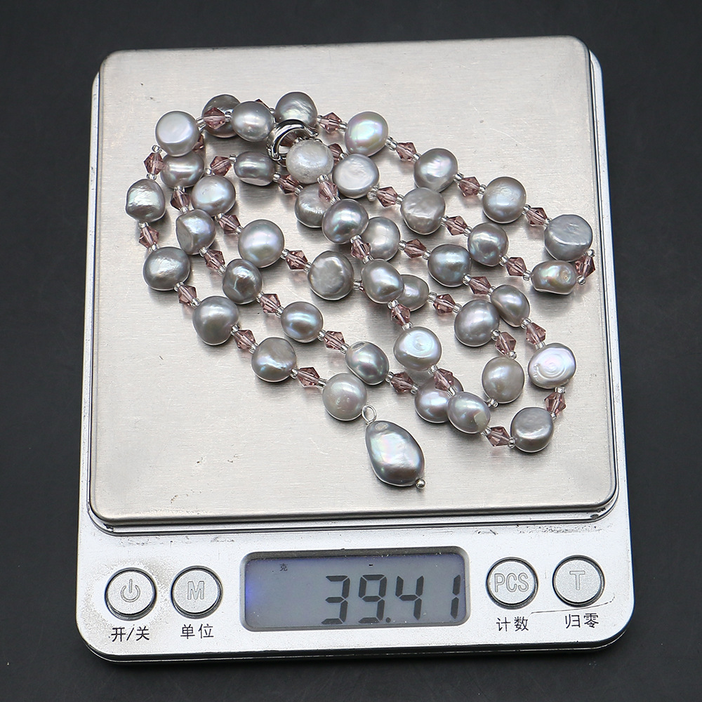 Кристалл свитер пресноводных жемчужное ожерелье, Пресноводные жемчуги, с Кристаллы & Нержавеющая сталь 304, Нерегулярные, ювелирные изделия моды, разноцветный, 8-9mm, длина:62 см, продается Strand