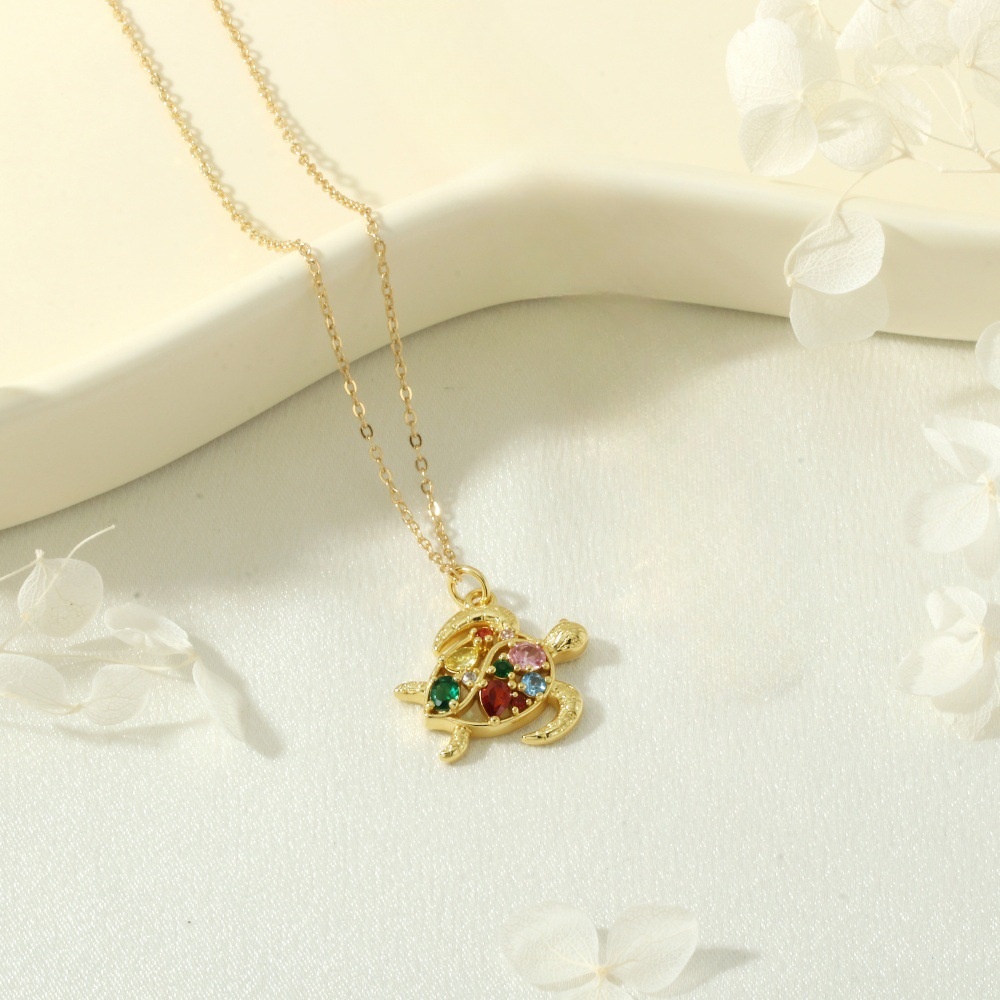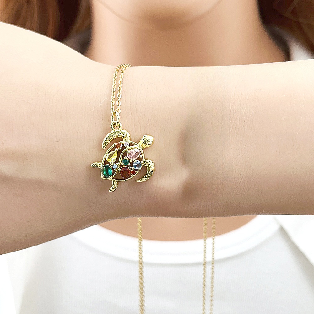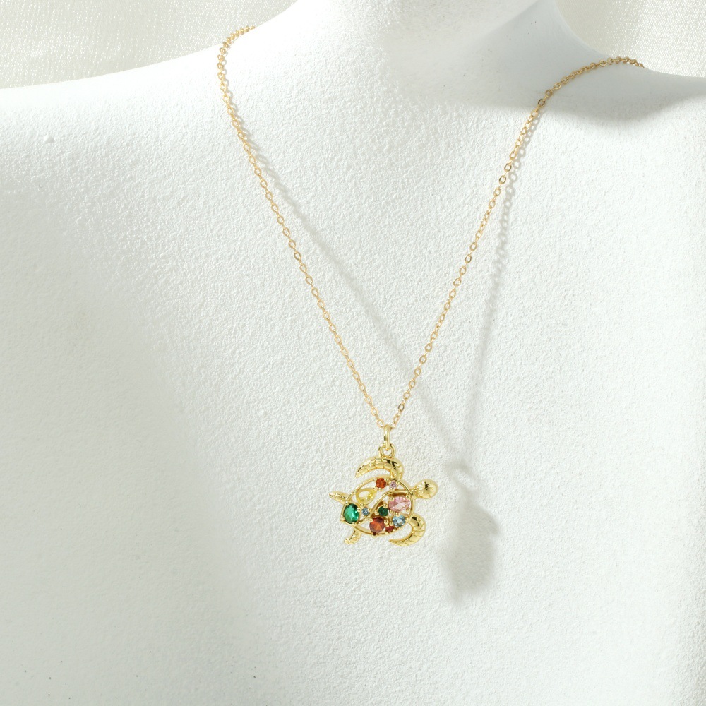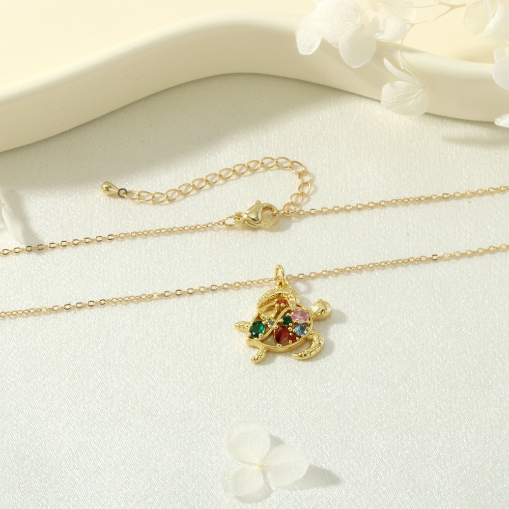 Корень Циркон Микро вымощает латунь ожерелье, Латунь, Черепаха, плакирован золотом, ювелирные изделия моды & инкрустированное микро кубического циркония, Золотой, продается PC