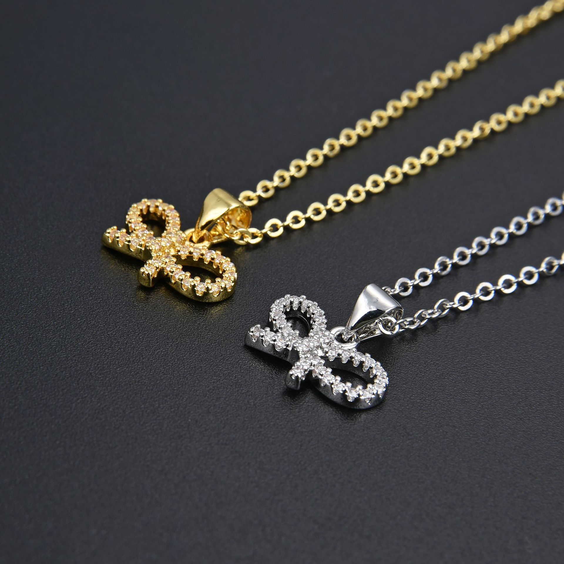 Корень Циркон Микро вымощает латунь ожерелье, Латунь, Платиновое покрытие платиновым цвет, букв, от A до Z & Цепной ящик & инкрустированное микро кубического циркония & Женский, 28mm, длина:Приблизительно 19.6 дюймовый, продается Strand
