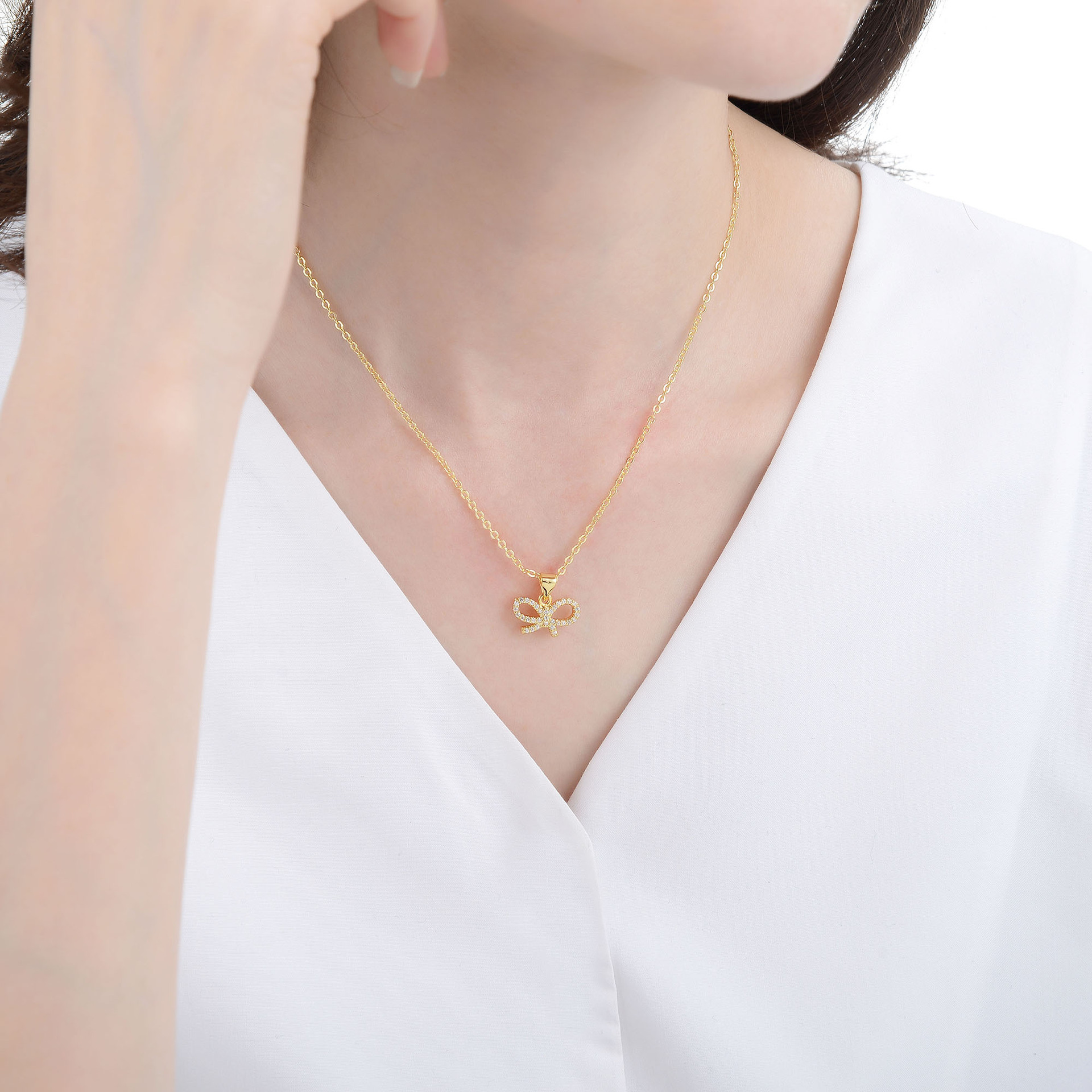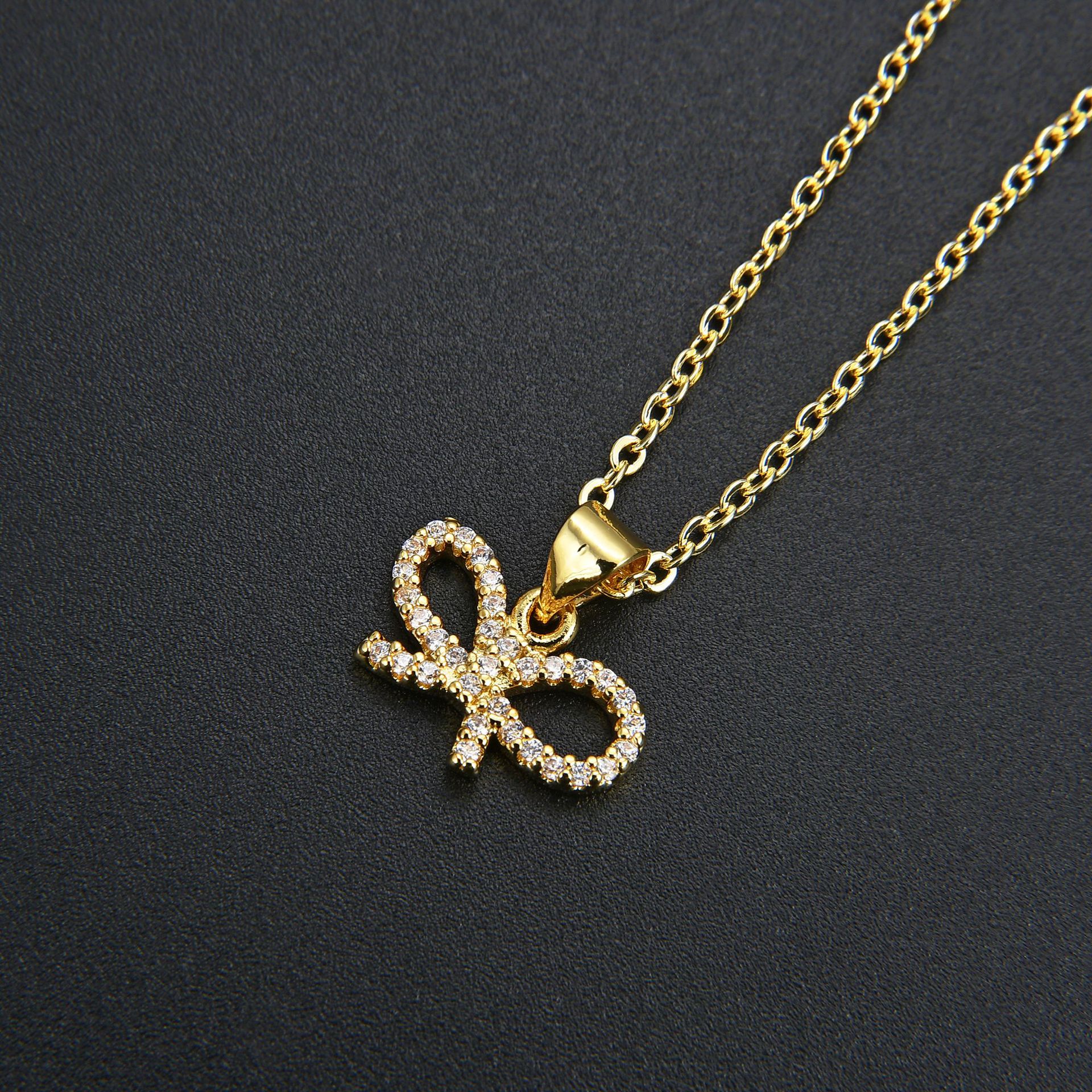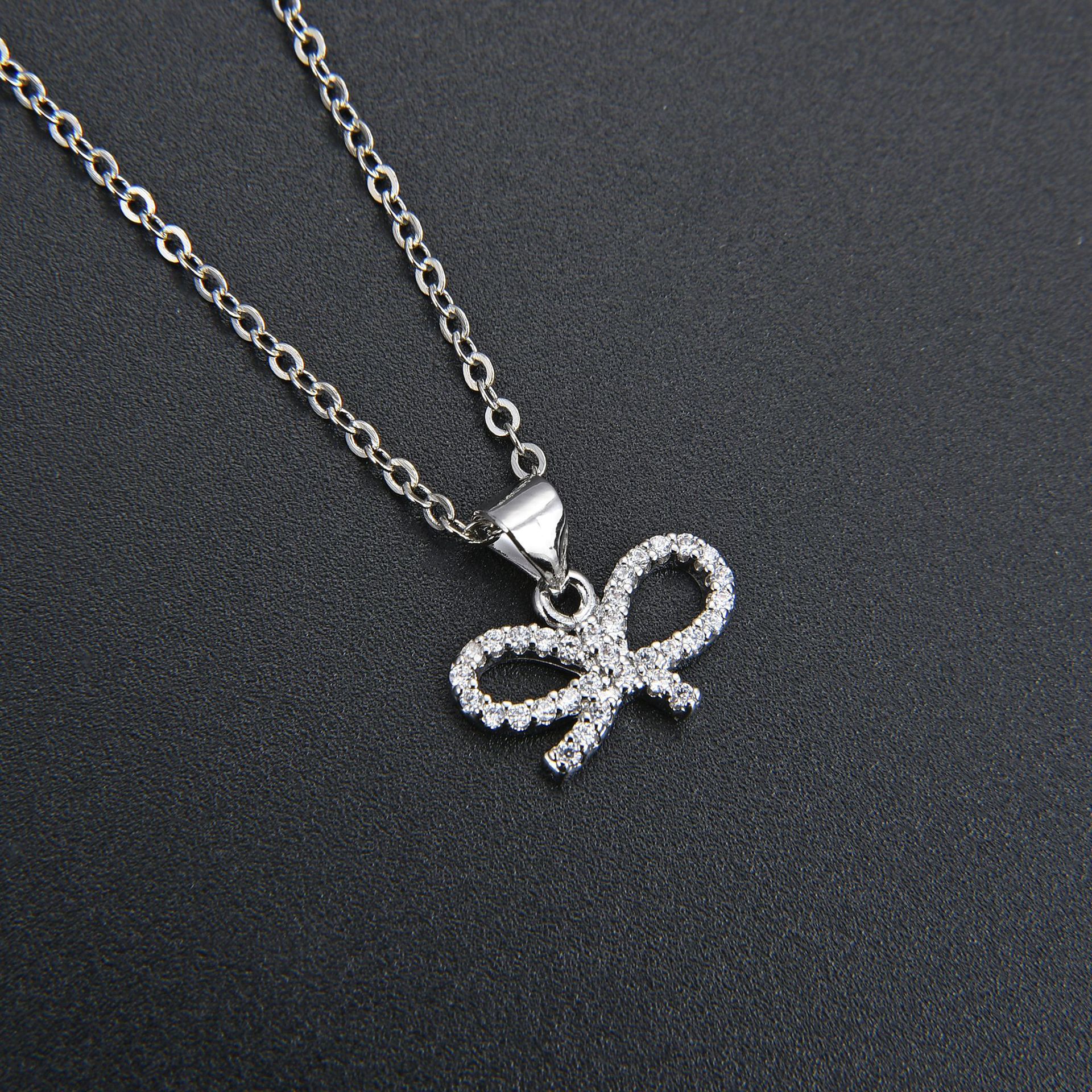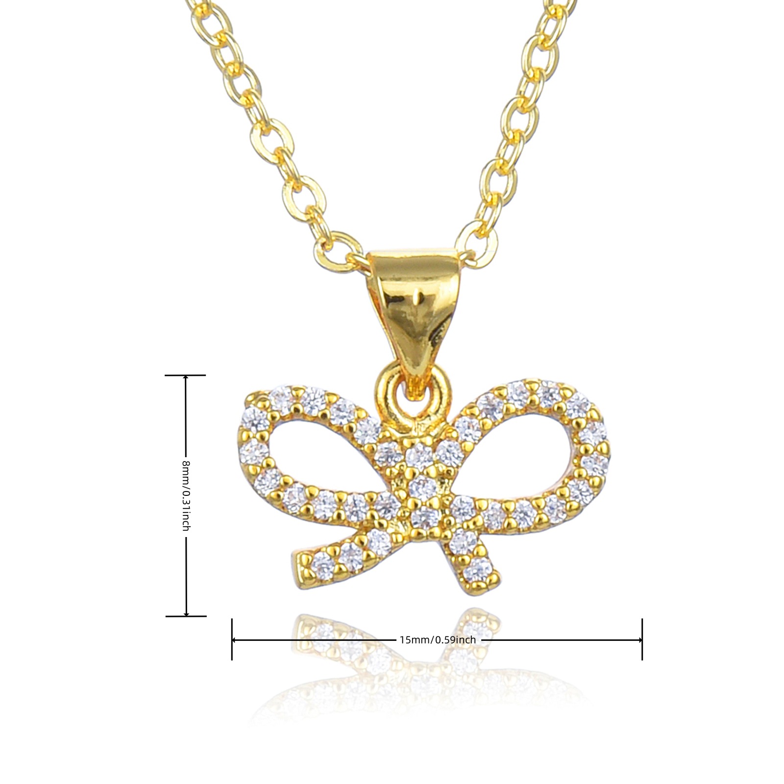Корень Циркон Микро вымощает латунь ожерелье, Латунь, с 5cm наполнитель цепи, Бантик, инкрустированное микро кубического циркония & Женский & отверстие, Много цветов для выбора, длина:45 см, продается PC