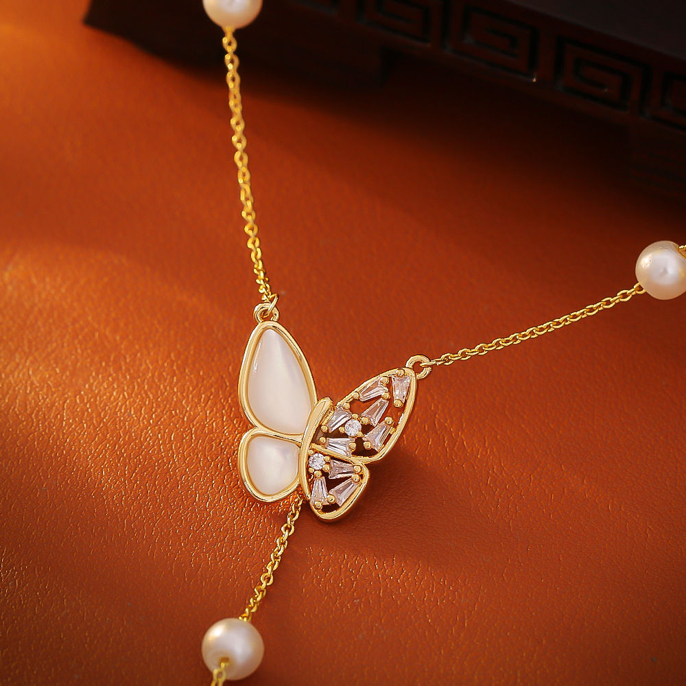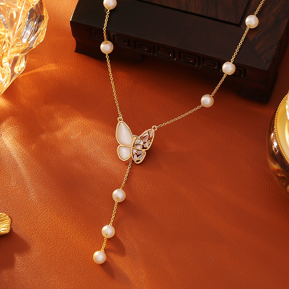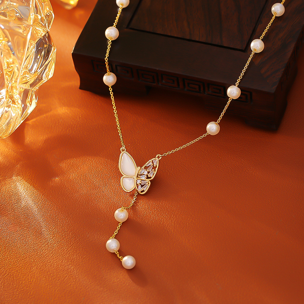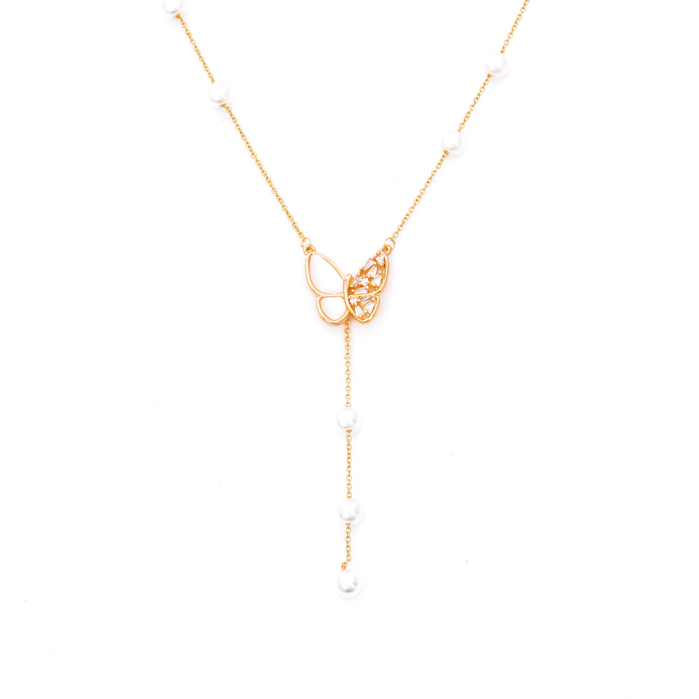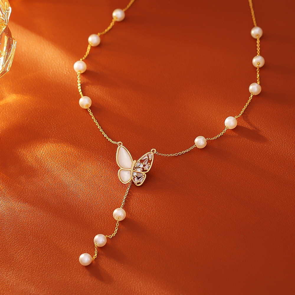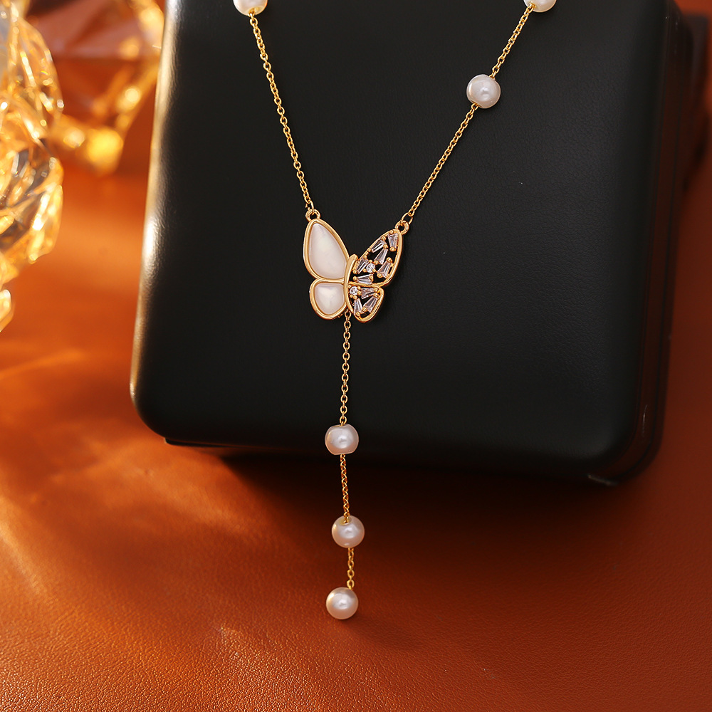 Корень Циркон Микро вымощает латунь ожерелье, Латунь, с жемчужный устрица & Пластиковая жемчужина, Другое покрытие, ювелирные изделия моды & инкрустированное микро кубического циркония & Женский, Золотой, длина:45 см, продается PC