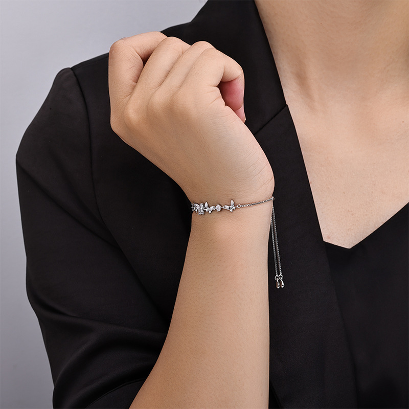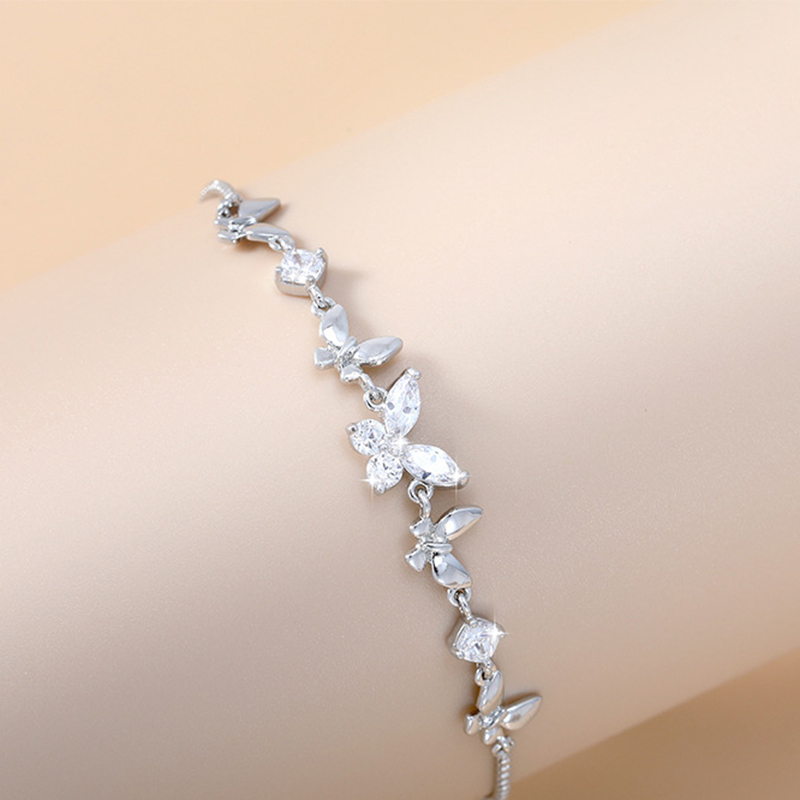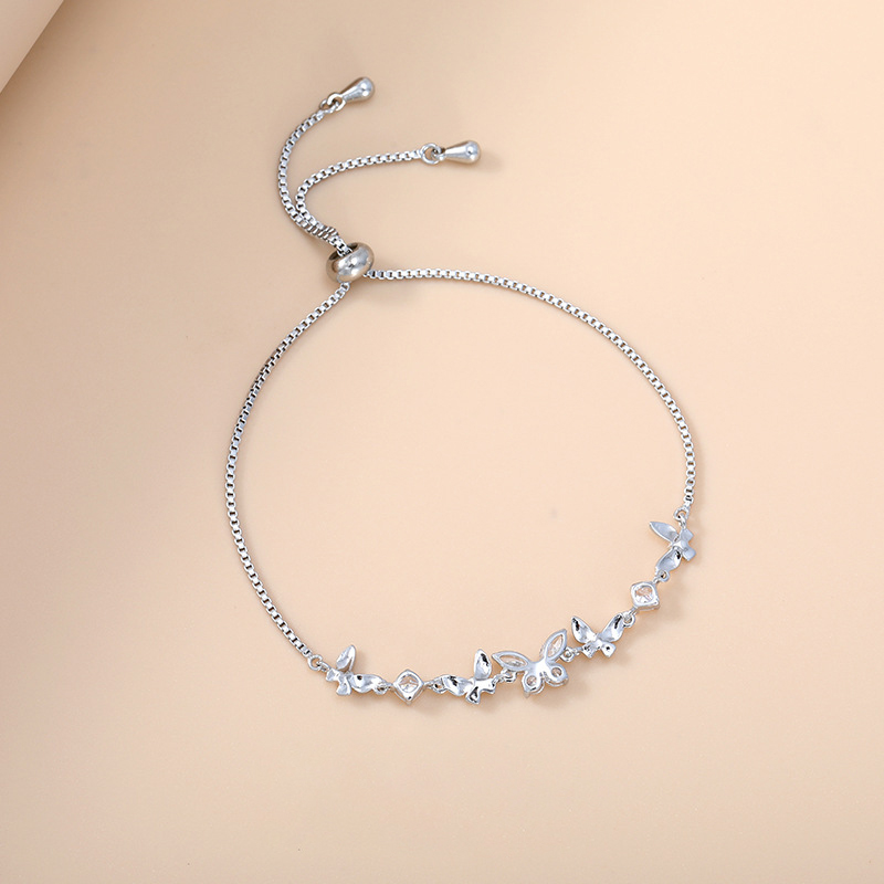 Цирконий Микро вымощает латунь Браслет, Латунь, бабочка, Другое покрытие, регулируемый & Цепной ящик & инкрустированное микро кубического циркония & Женский, серебряный, длина:Приблизительно 6-9 дюймовый, продается PC