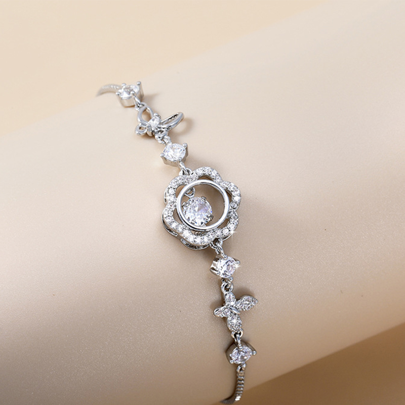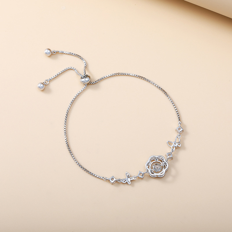 Цирконий Микро вымощает латунь Браслет, Латунь, Форма цветка, Другое покрытие, регулируемый & Цепной ящик & инкрустированное микро кубического циркония & Женский, серебряный, длина:Приблизительно 6-9 дюймовый, продается PC