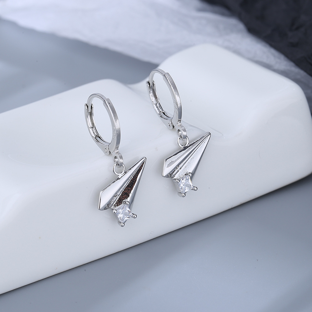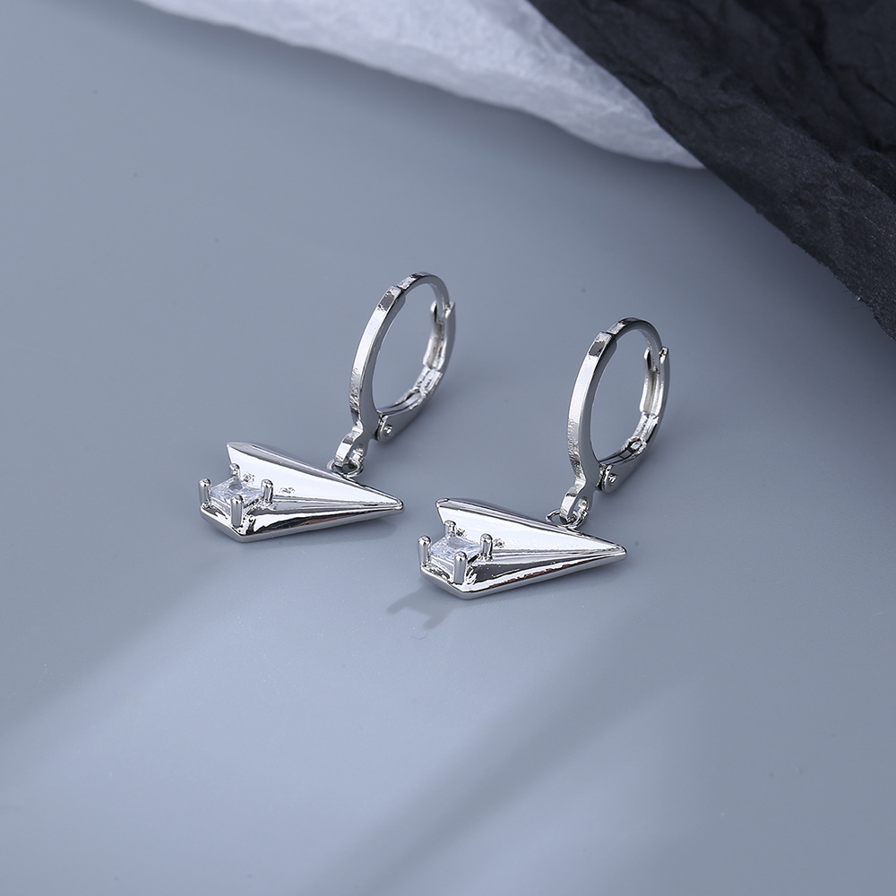 Цирконий Микро вымощает латунь Серьги, Латунь, Самолет, Другое покрытие, инкрустированное микро кубического циркония & Женский, платиновый цвет, 27mm, продается PC