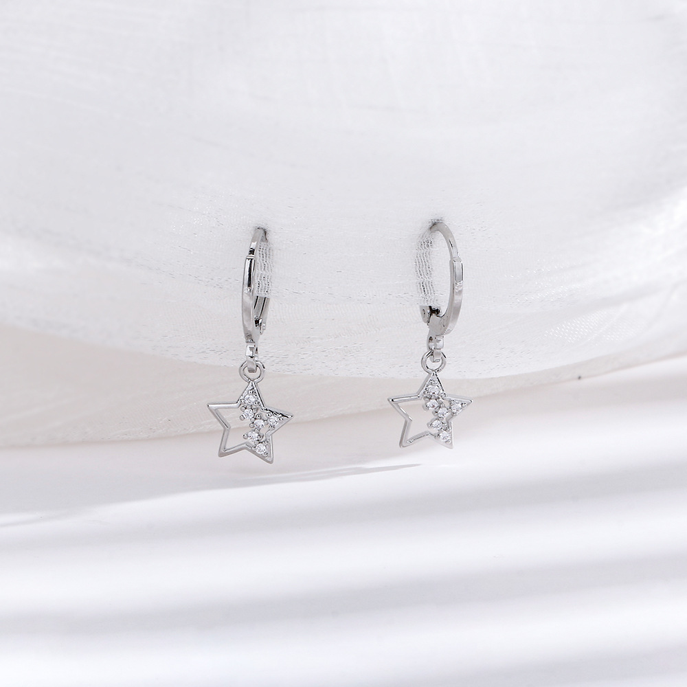 Цирконий Микро вымощает латунь Серьги, Латунь, Звезда, Другое покрытие, инкрустированное микро кубического циркония & Женский, платиновый цвет, 23mm, продается Пара