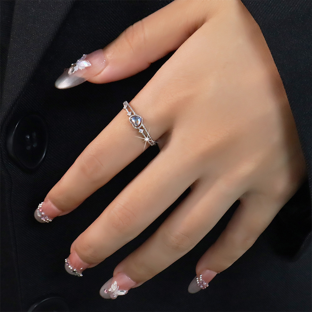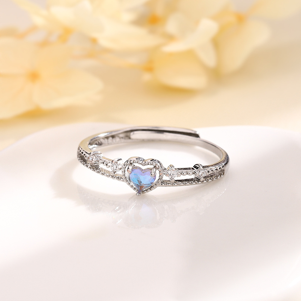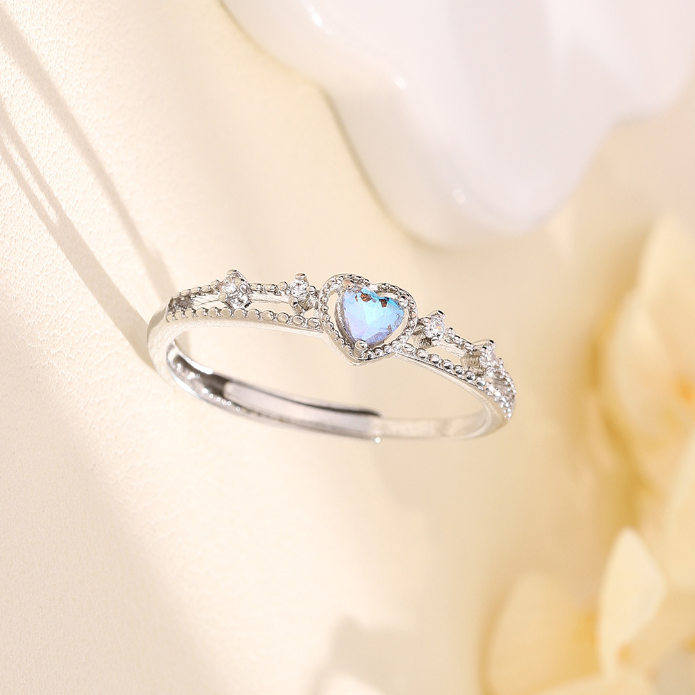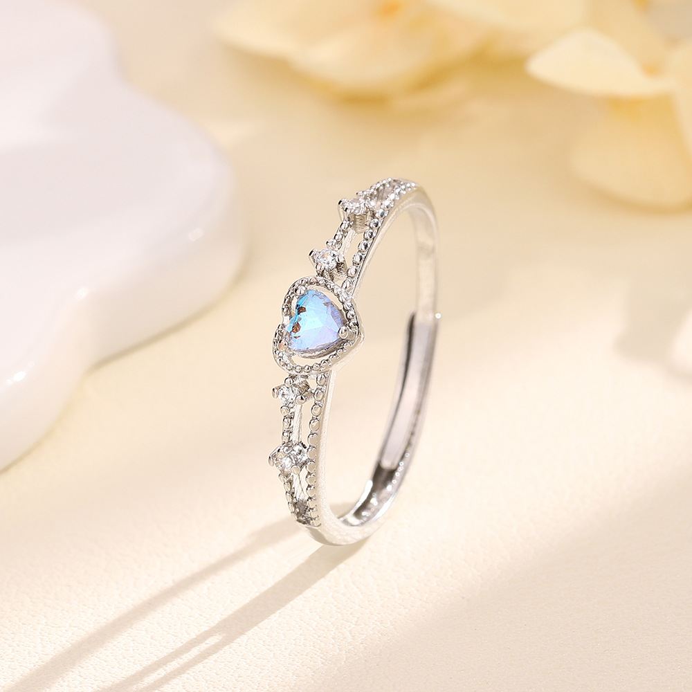 Цирконий Micro Pave Латунь палец кольцо, с Лунный камень, Другое покрытие, инкрустированное микро кубического циркония & Женский, платиновый цвет, продается PC