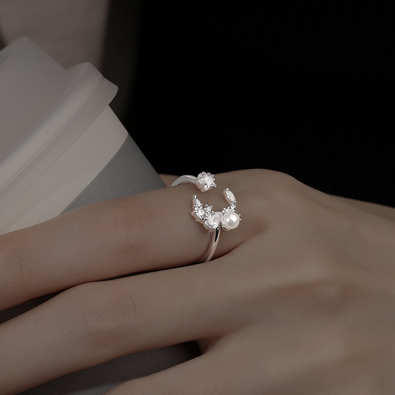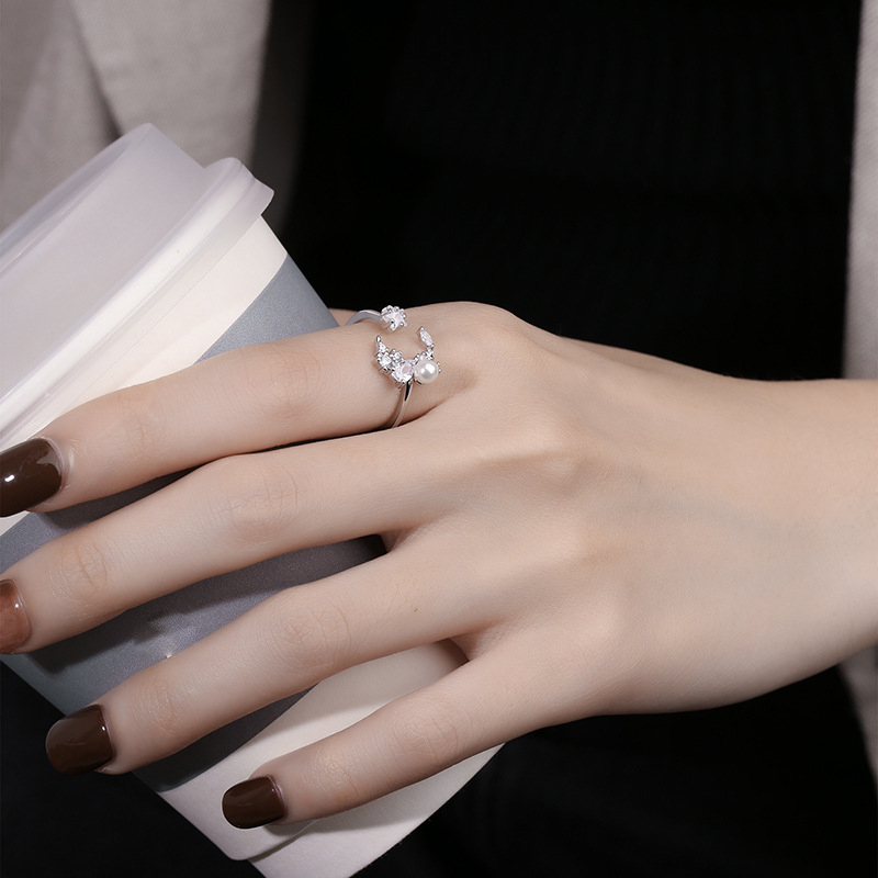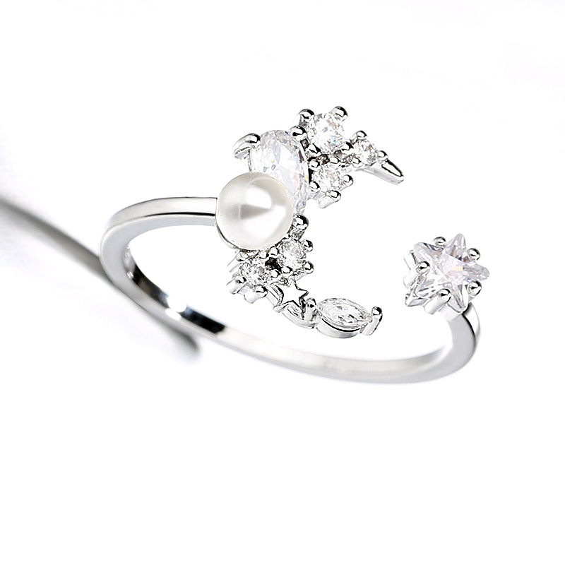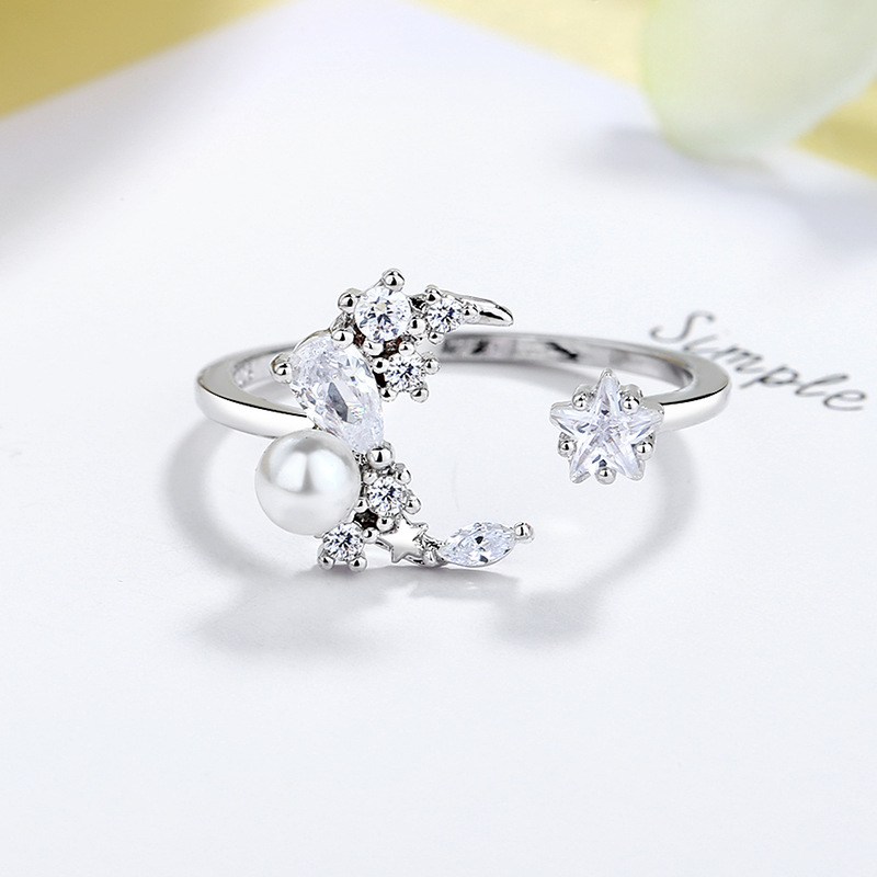 Цирконий Micro Pave Латунь палец кольцо, с Пластиковая жемчужина, Другое покрытие, инкрустированное микро кубического циркония & Женский, платиновый цвет, продается PC
