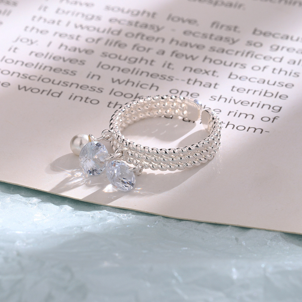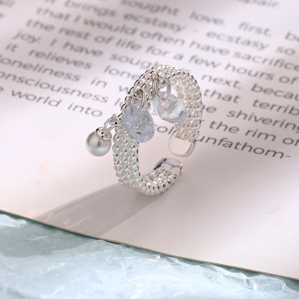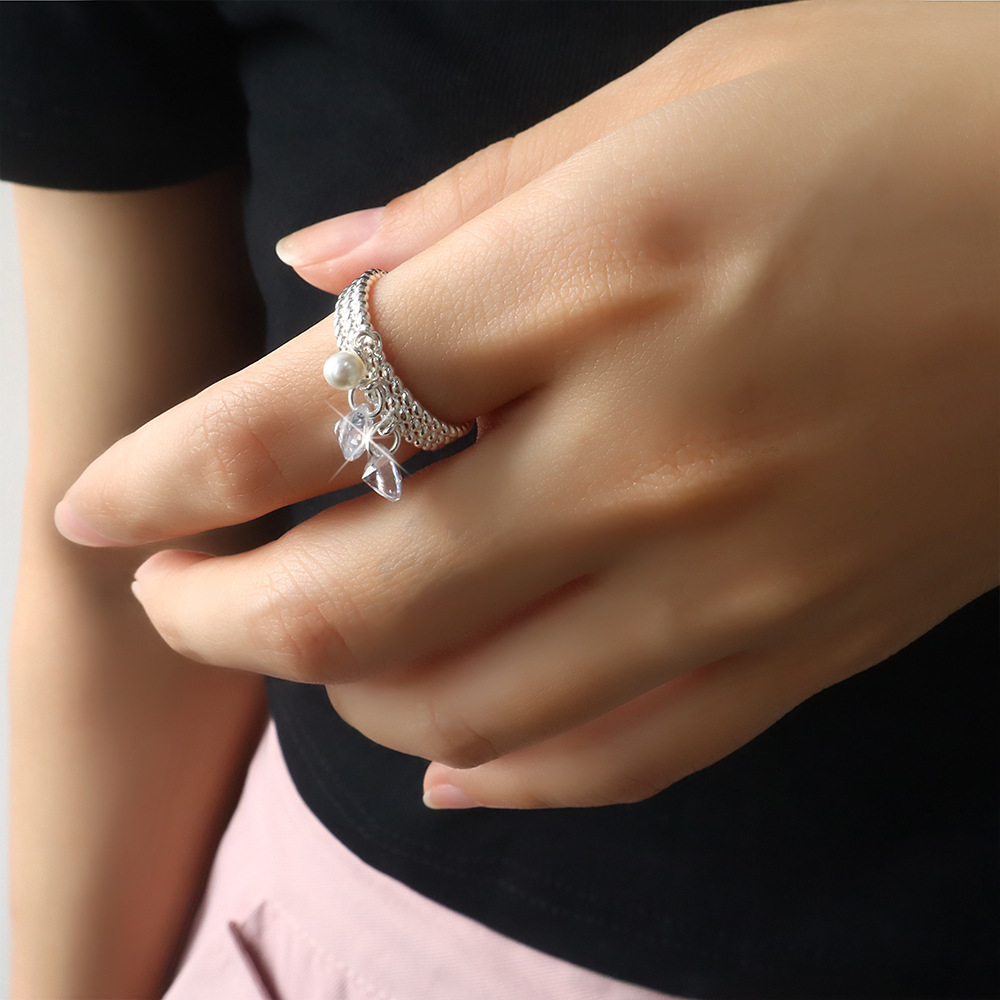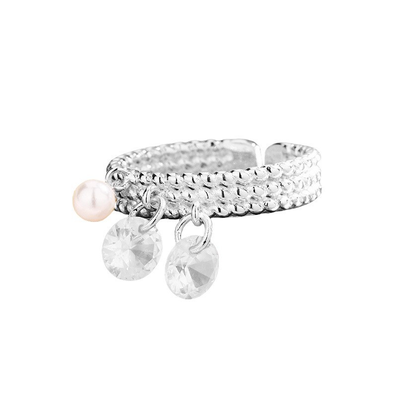 Цирконий Micro Pave Латунь палец кольцо, с Пластиковая жемчужина, Другое покрытие, инкрустированное микро кубического циркония & Женский, платиновый цвет, продается PC