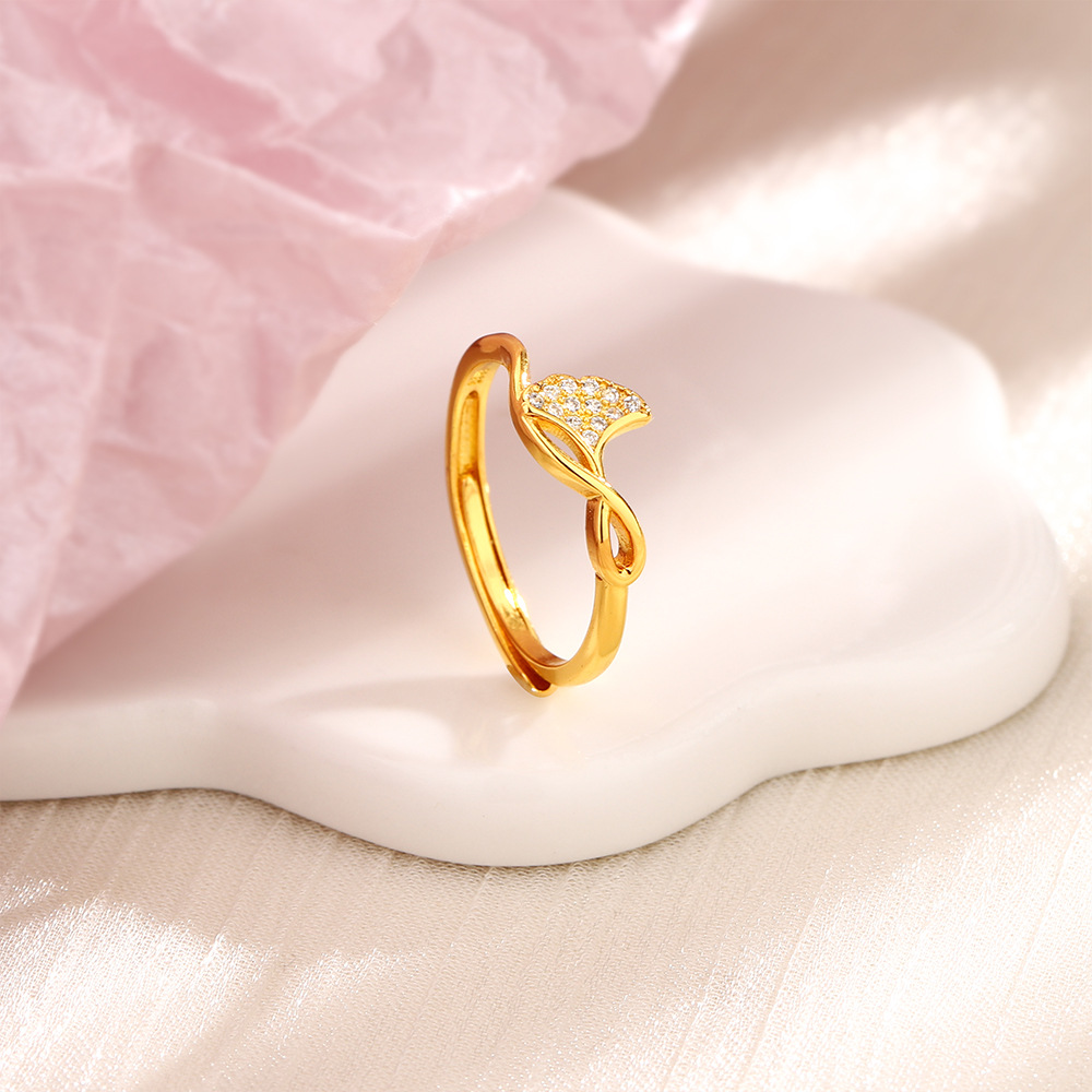 Цирконий Micro Pave Латунь палец кольцо, Гинкго лист, Другое покрытие, инкрустированное микро кубического циркония & Женский, Много цветов для выбора, продается PC