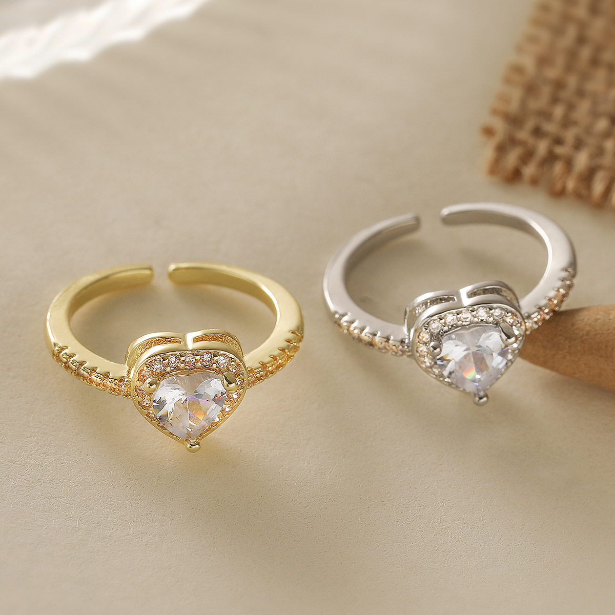 Цирконий Micro Pave Латунь палец кольцо, Сердце, Другое покрытие, ювелирные изделия моды & инкрустированное микро кубического циркония, Много цветов для выбора, продается PC