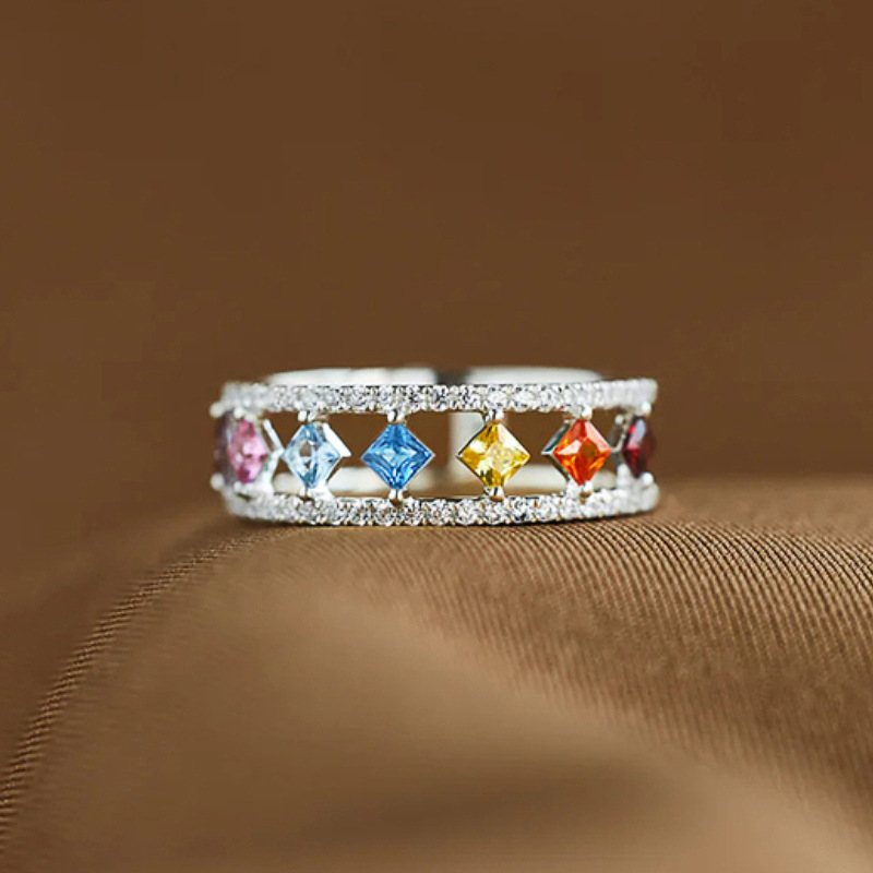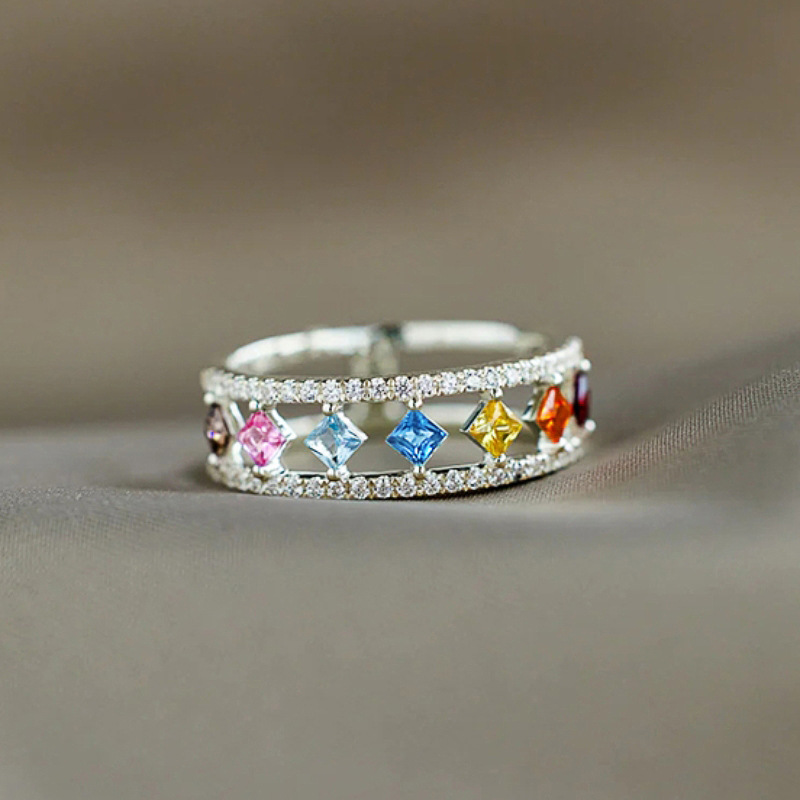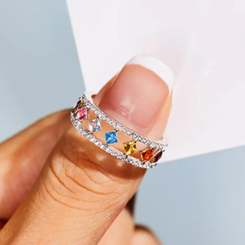 Цирконий Micro Pave Латунь палец кольцо, Медный сплав, Геометрический узор, Платиновое покрытие платиновым цвет, инкрустированное микро кубического циркония, Много цветов для выбора, 7*7mm, продается PC