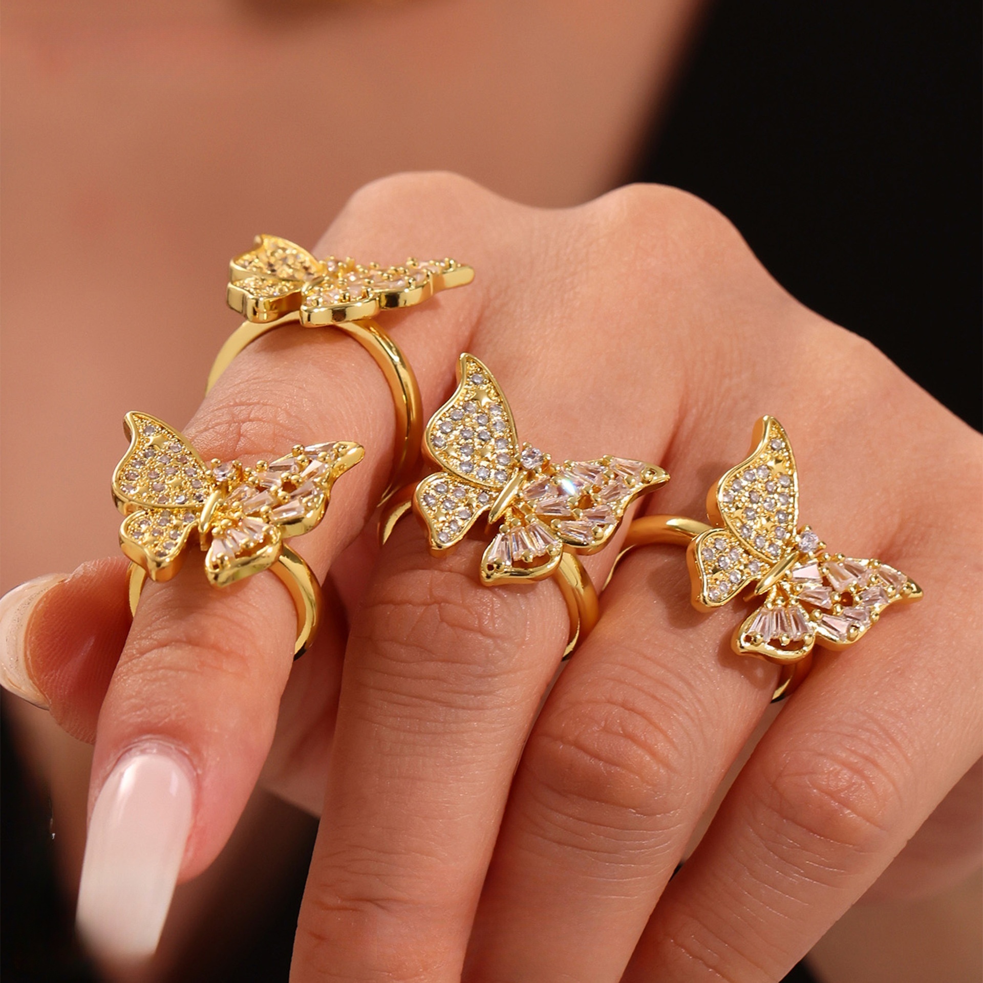 Цирконий Micro Pave Латунь палец кольцо, бабочка, 18K позолоченный, ювелирные изделия моды & инкрустированное микро кубического циркония & Женский, продается PC