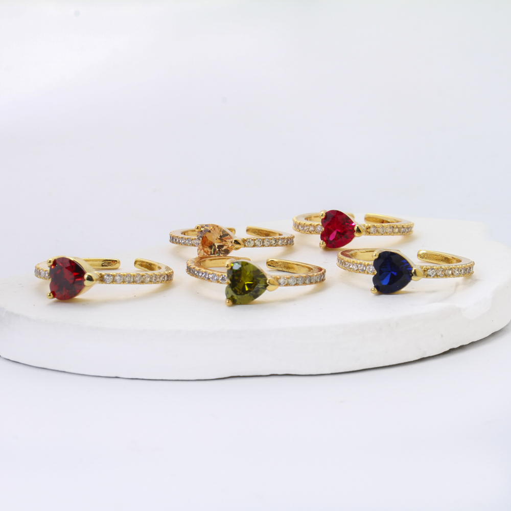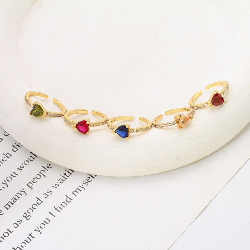 Цирконий Micro Pave Латунь палец кольцо, Сердце, Другое покрытие, ювелирные изделия моды & инкрустированное микро кубического циркония, Много цветов для выбора, 22x20x4.8mm, продается PC