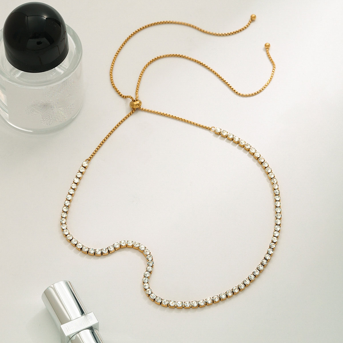 Ожерелье Цирконий нержавеющей стали, Нержавеющая сталь 304, с кубический цирконий, Другое покрытие, ювелирные изделия моды & Женский, Золотой, длина:29.92 дюймовый, продается PC
