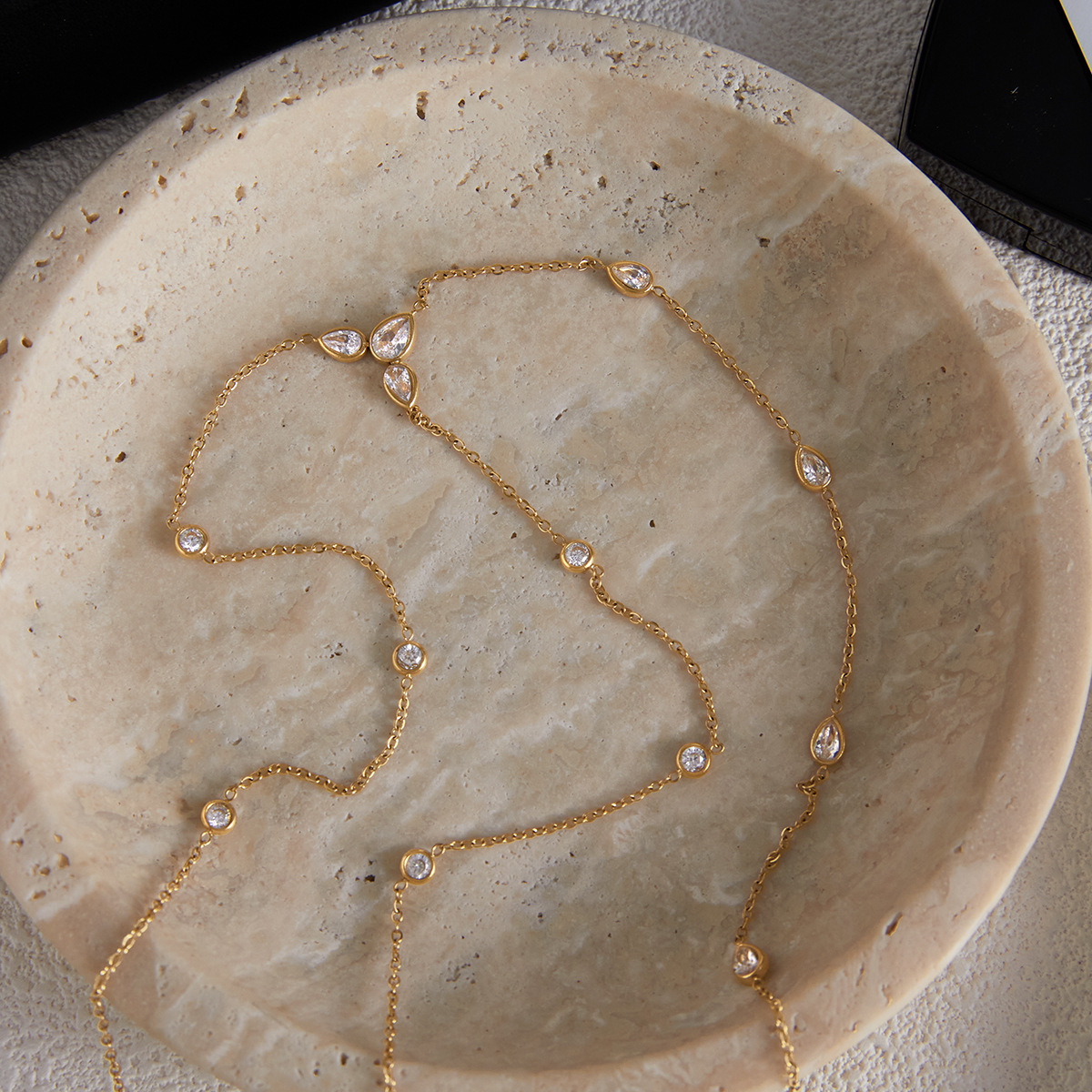 Ожерелье Цирконий нержавеющей стали, Нержавеющая сталь 304, с кубический цирконий, Другое покрытие, ювелирные изделия моды & Женский, Золотой, продается PC