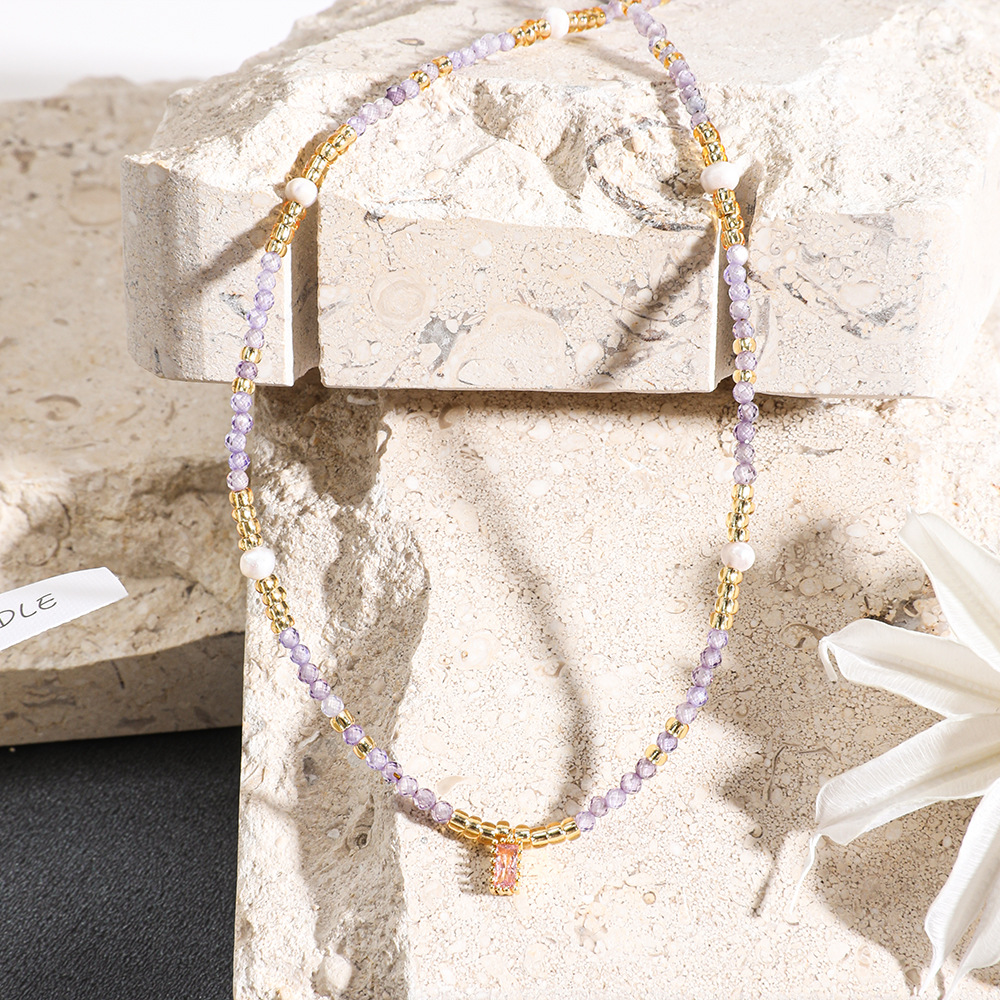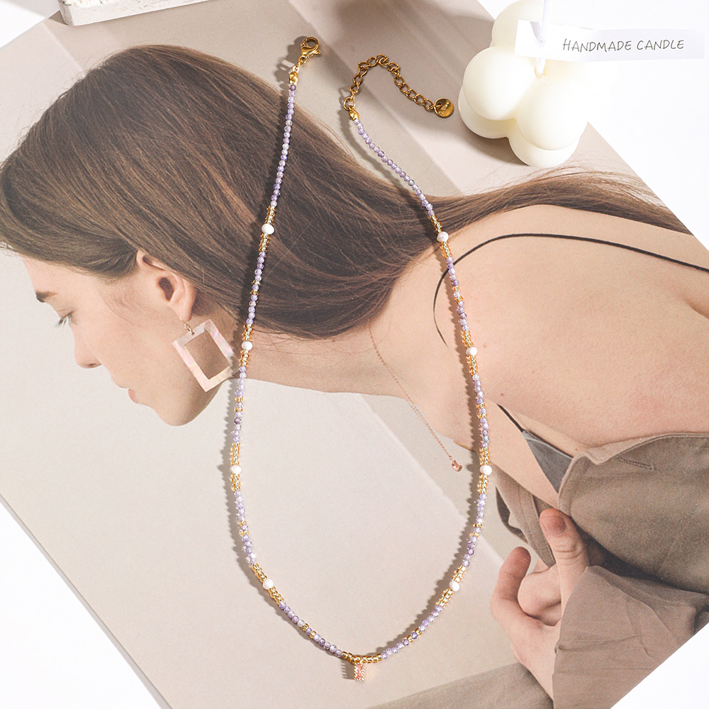 Ожерелье Цирконий нержавеющей стали, Нержавеющая сталь 304, с Ракушка, вакуумное ионное покрытие, Женский, продается PC