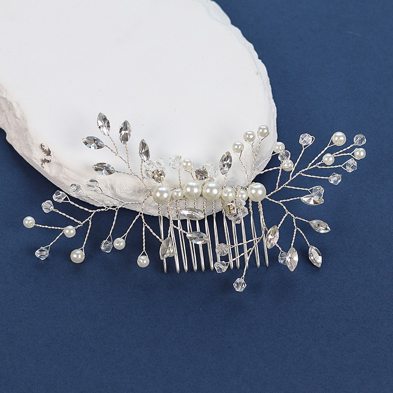Декоративные гребни для волос, цинковый сплав, с Медная проволока & Кристаллы & Пластиковая жемчужина, Связанный вручную, ювелирные изделия моды & Женский, Много цветов для выбора, продается PC