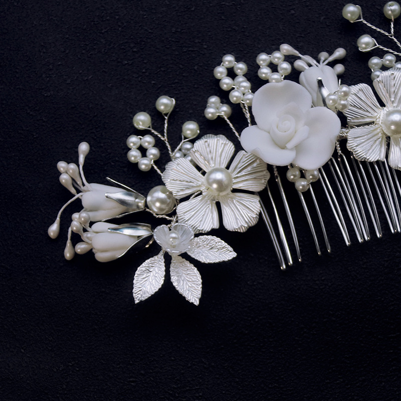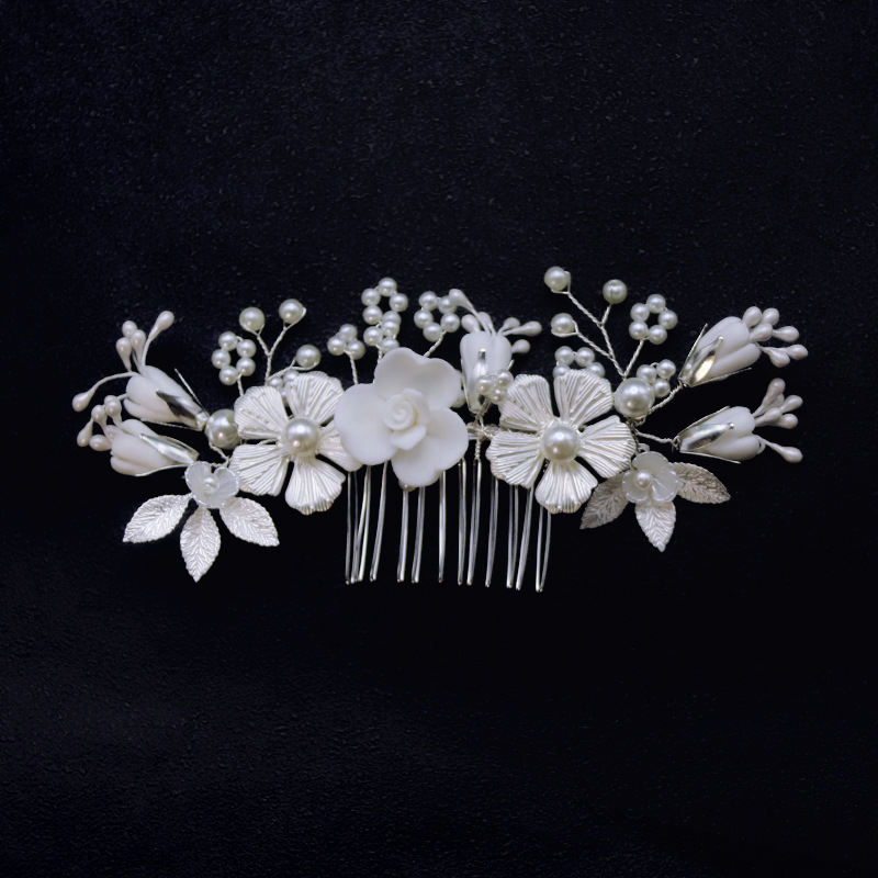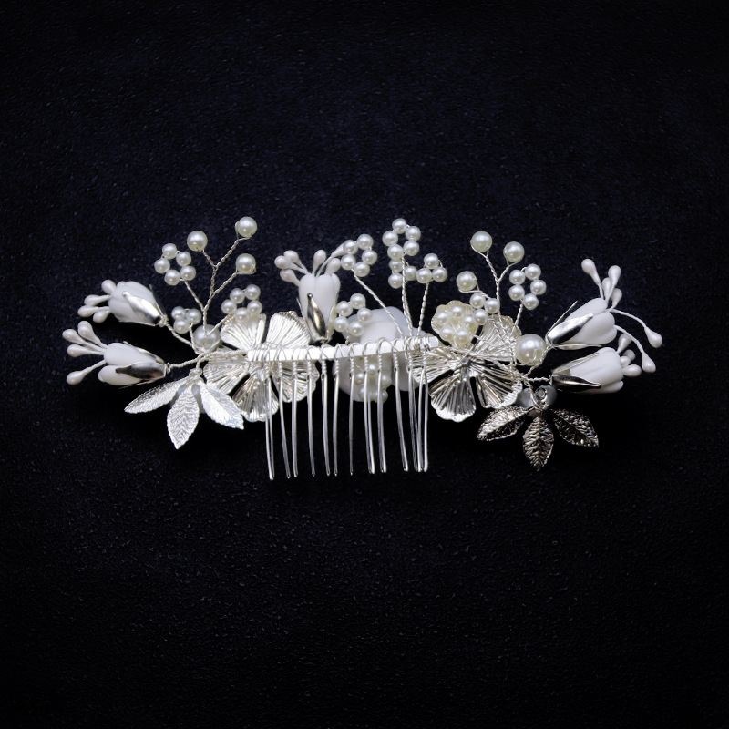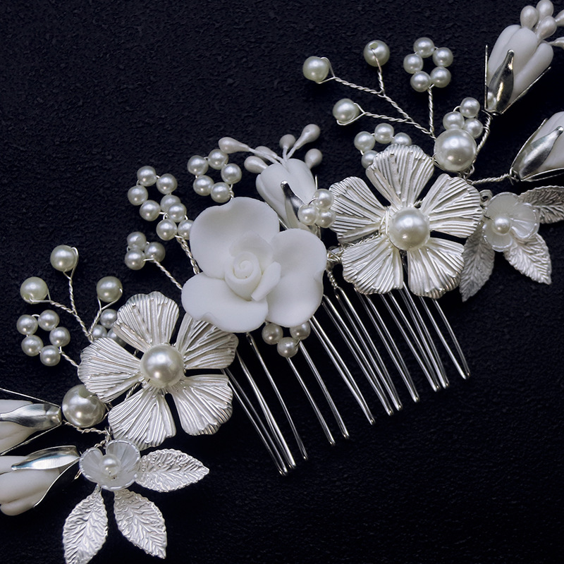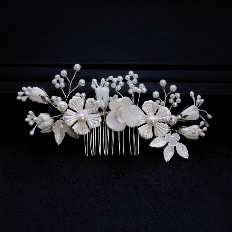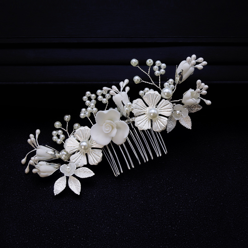 Декоративные гребни для волос, цинковый сплав, с Медная проволока & полимерный клей & Пластиковая жемчужина, Связанный вручную, ювелирные изделия моды & Женский, серебряный, 150x65mm, продается PC