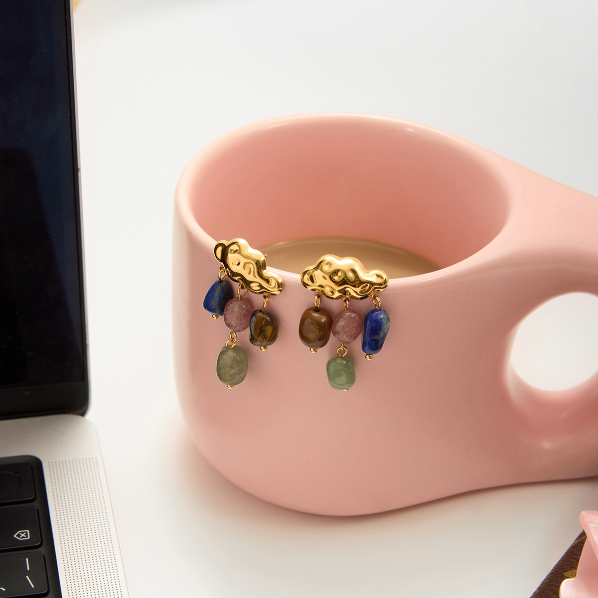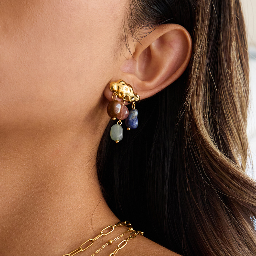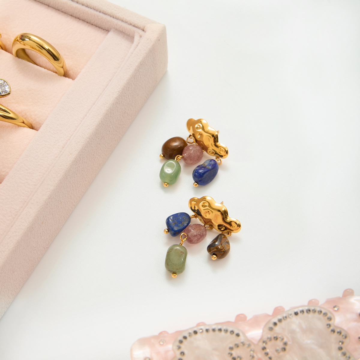 Драгоценный камень падение Серьги, Нержавеющая сталь 304, с Природный камень, Другое покрытие, ювелирные изделия моды & Женский, Золотой, продается Пара