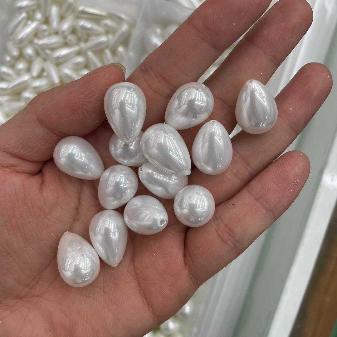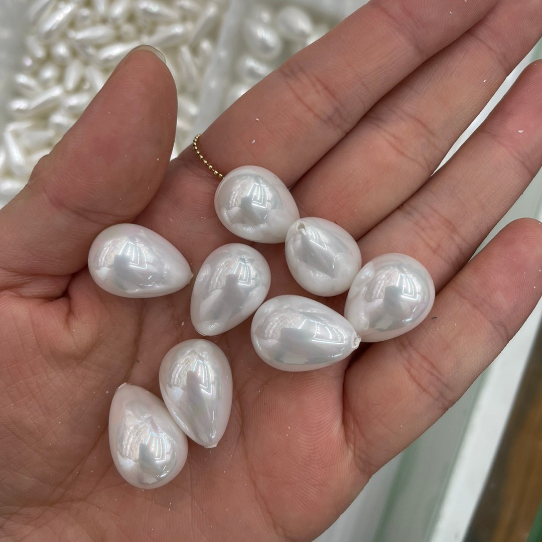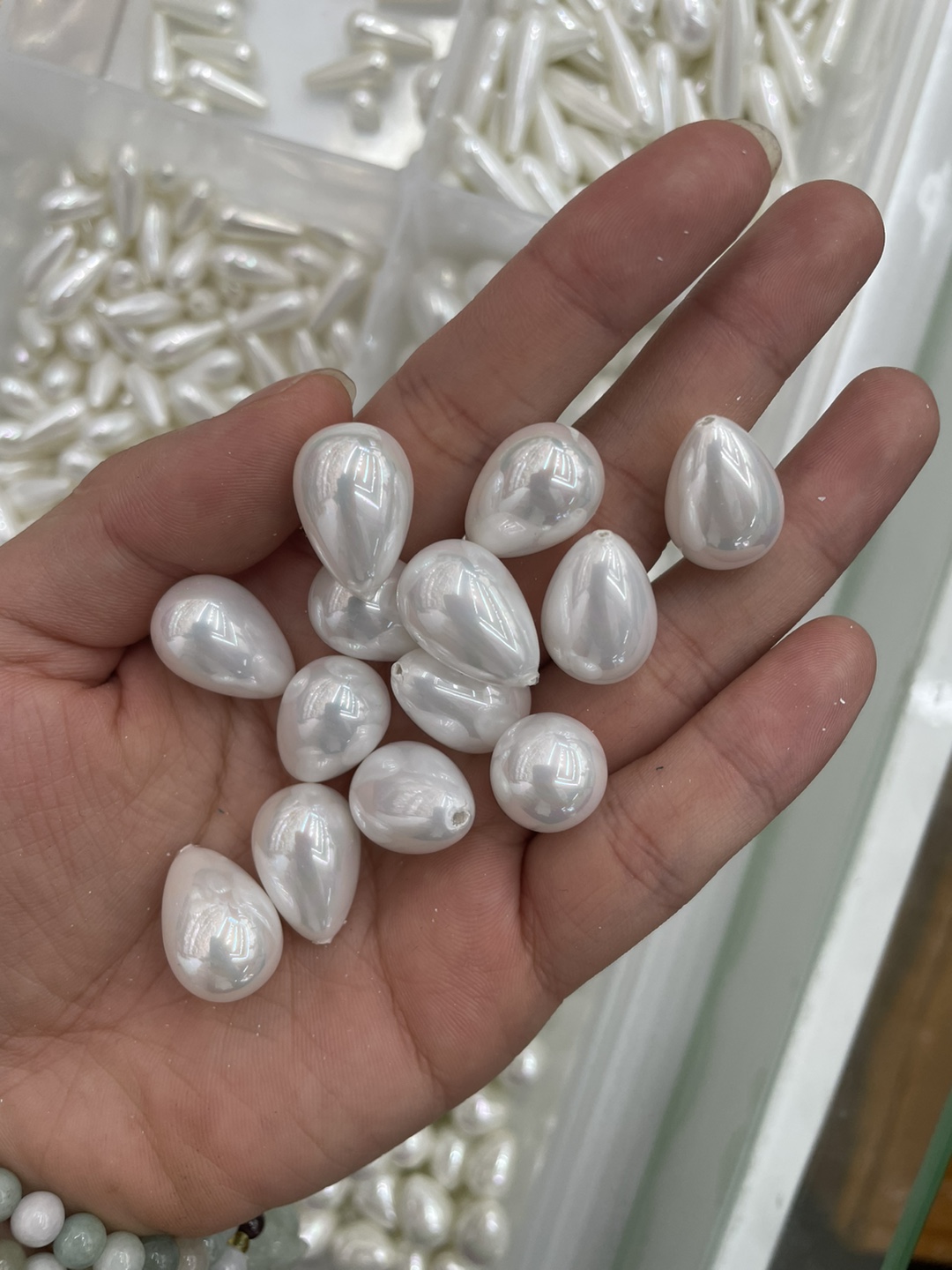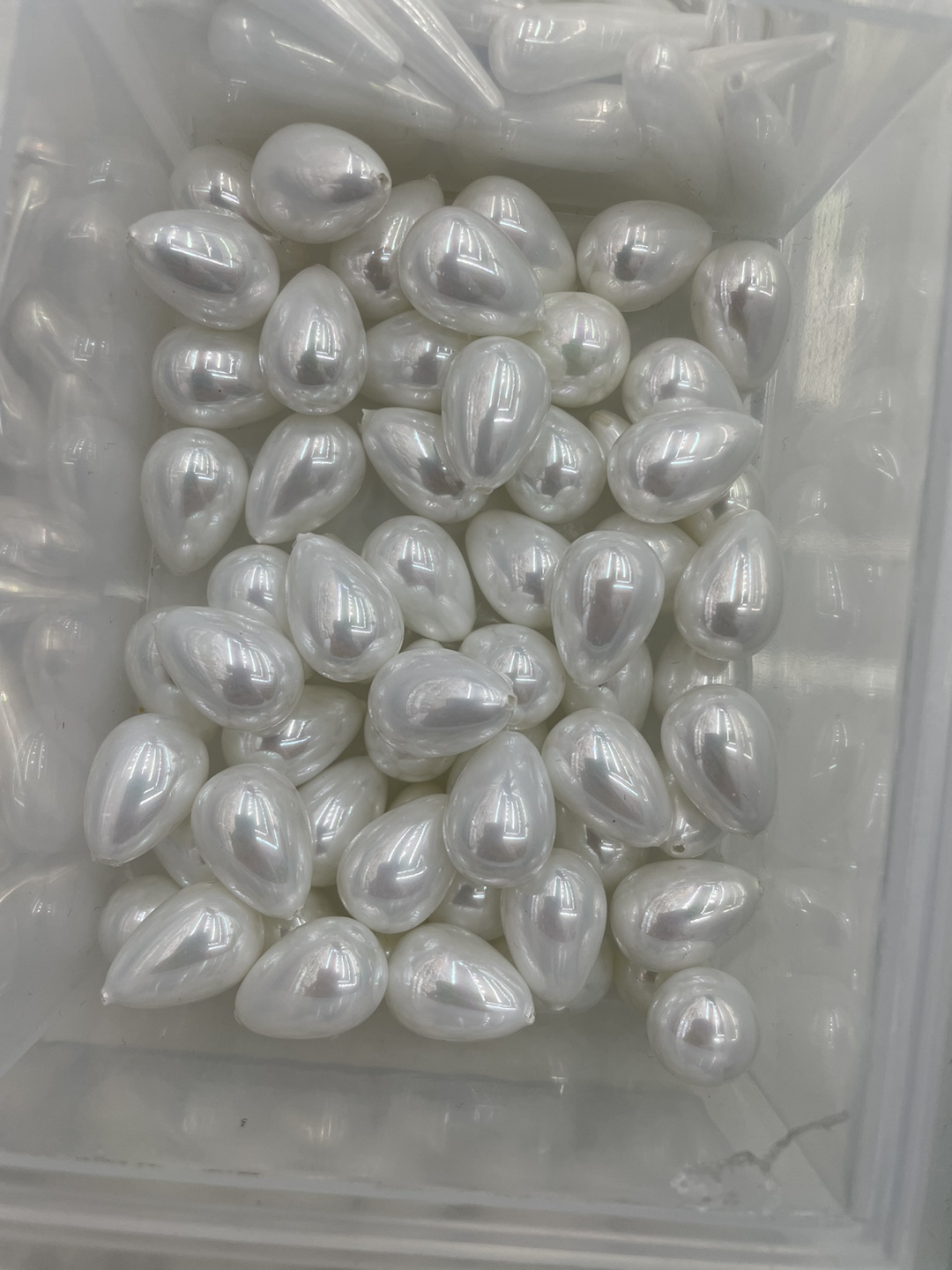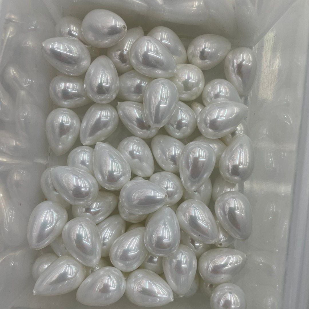 Стеклянные бусы из южного моря с половиной просверленного отверстия , Ракушка, Каплевидная форма, DIY, белый, 14x19mm, продается PC