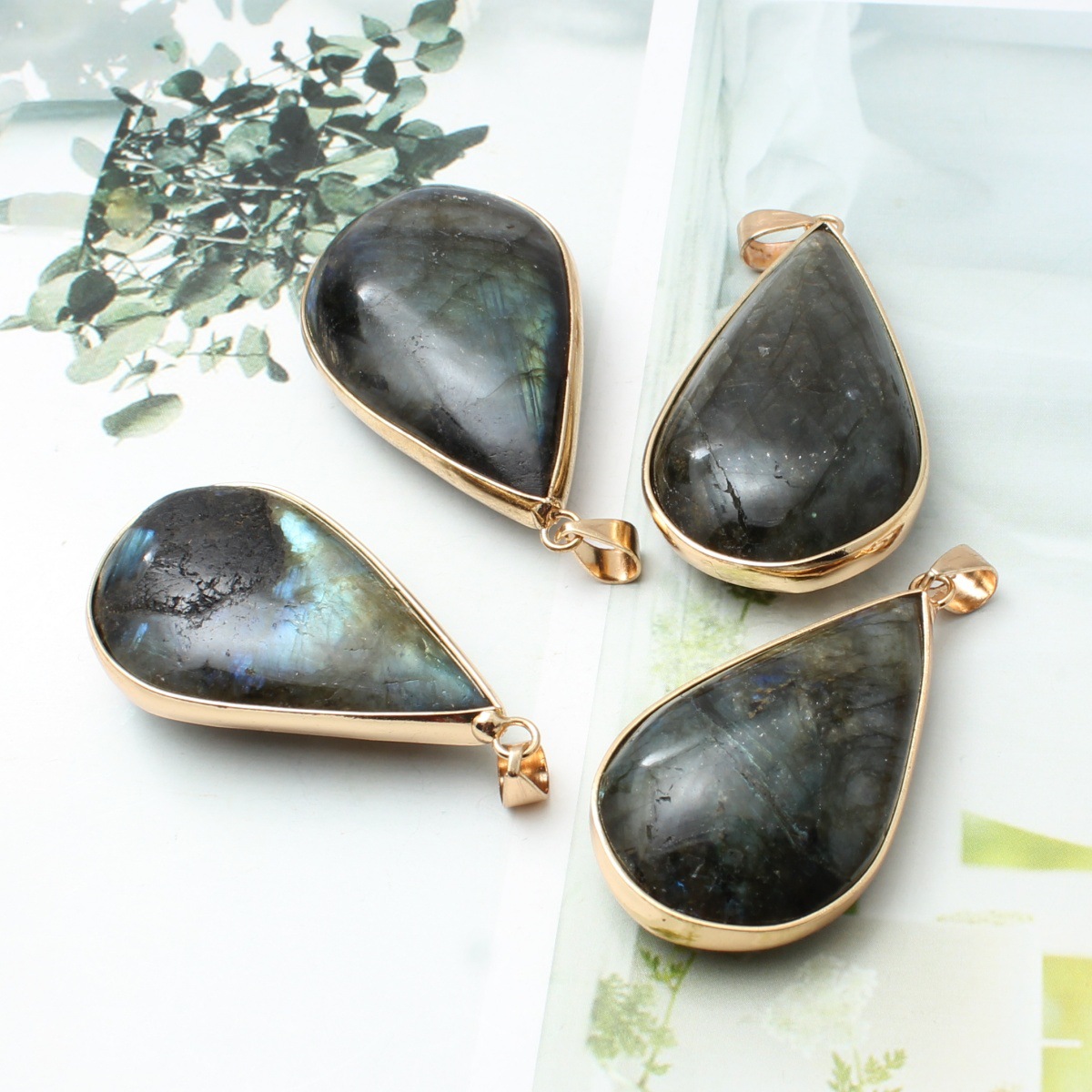 Лабрадорит подвески, с цинковый сплав, плакирован золотом, DIY, разноцветный, продается PC