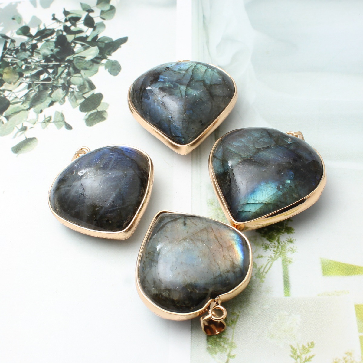 Лабрадорит подвески, с цинковый сплав, плакирован золотом, DIY, разноцветный, продается PC