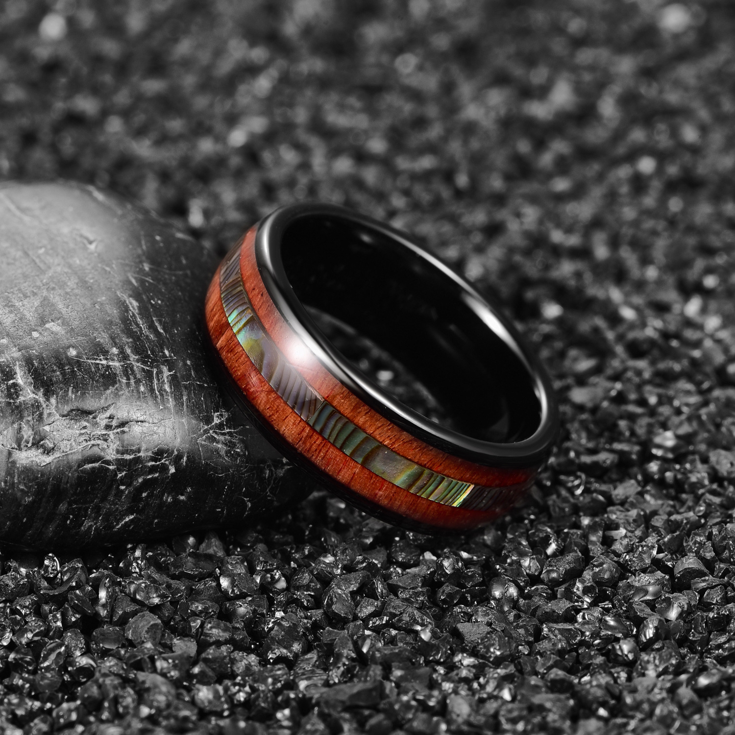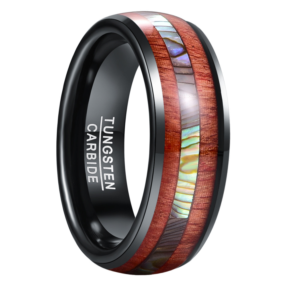 Мужское вольфрамовое стальное кольцо навалом, Вольфрама сталь, с Раковина морское ушко & деревянный, Другое покрытие, ювелирные изделия моды & разный размер для выбора & Мужский, черный, продается PC