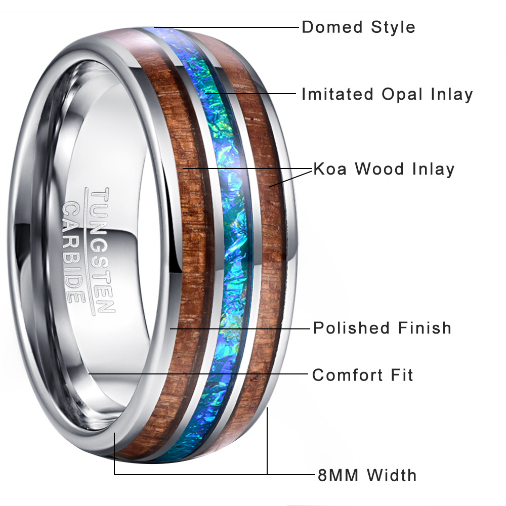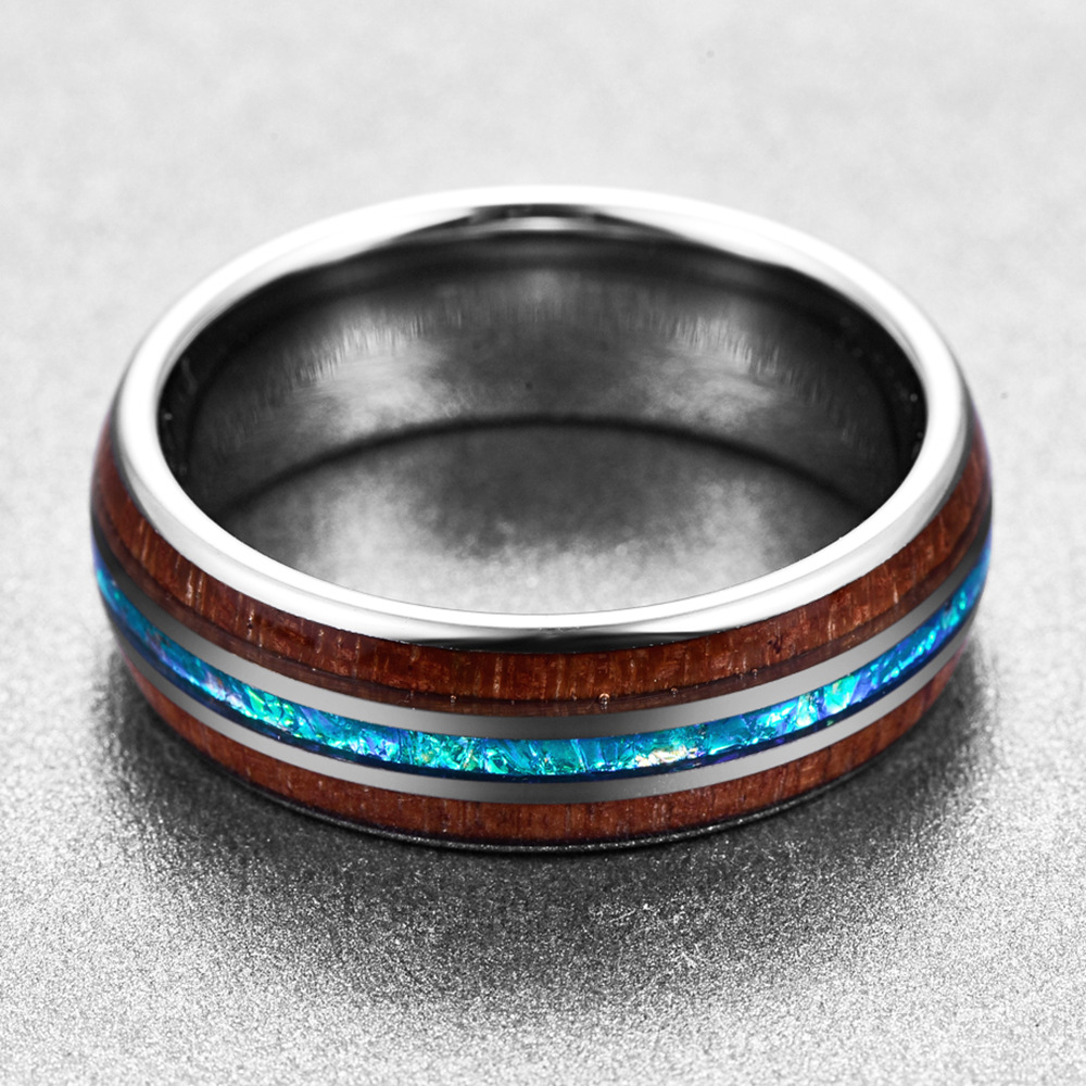 Мужское вольфрамовое стальное кольцо навалом, Вольфрама сталь, с опал & деревянный, полированный, ювелирные изделия моды & разный размер для выбора & Мужский, оригинальный цвет, продается PC