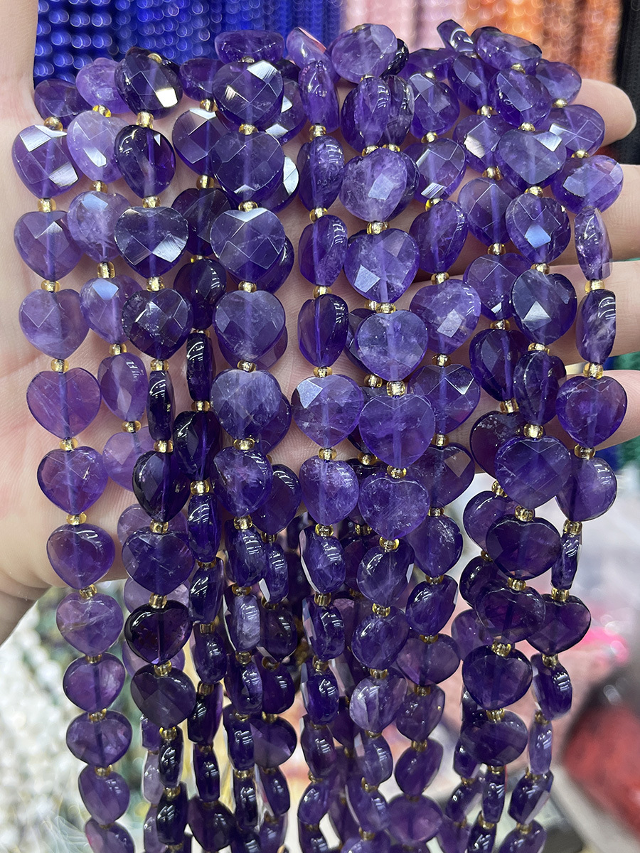 Природные бусины с аметистом, Аметист, с Seedbead, Сердце, DIY, фиолетовый, 12mm, длина:38 см, продается Strand