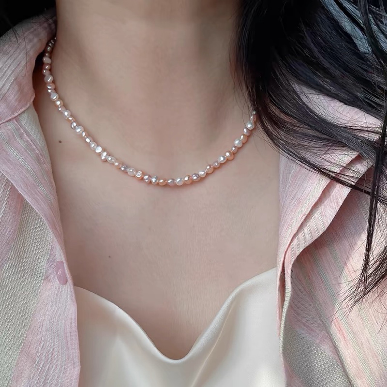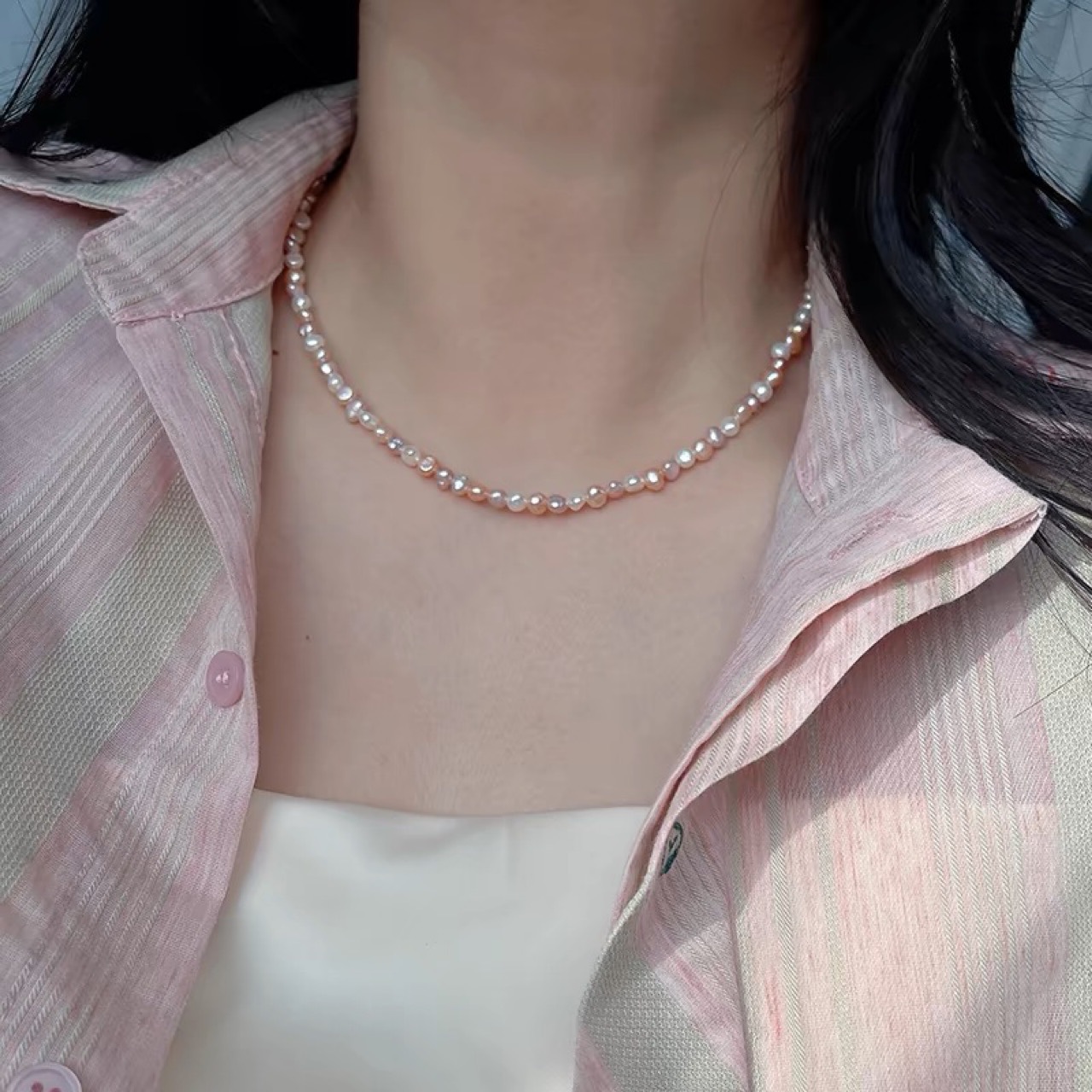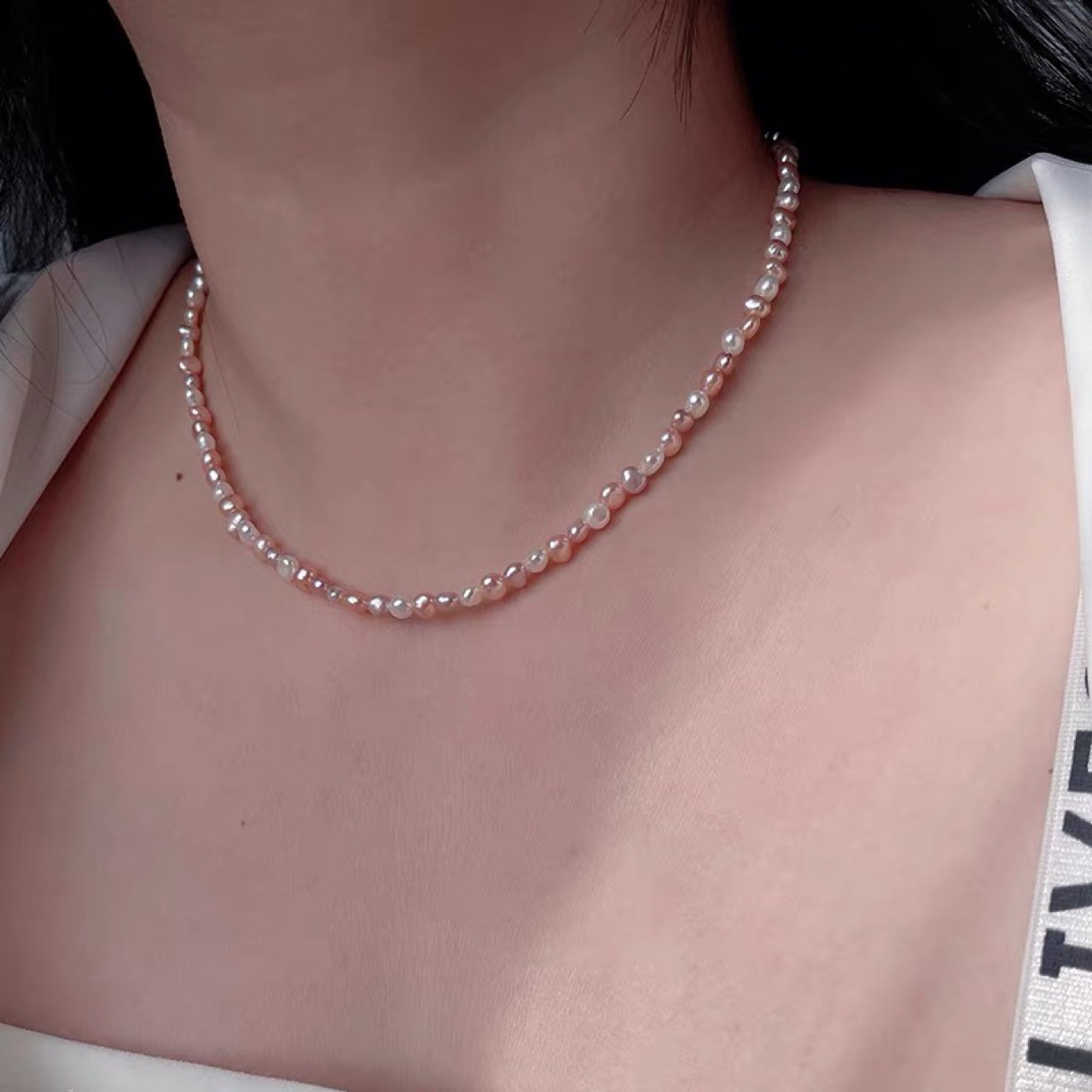 Природное пресноводное жемчужное ожерелье, Пресноводные жемчуги, с 925 пробы, Стиль Барокко, ювелирные изделия моды, Много цветов для выбора, 4x5mm, продается Strand