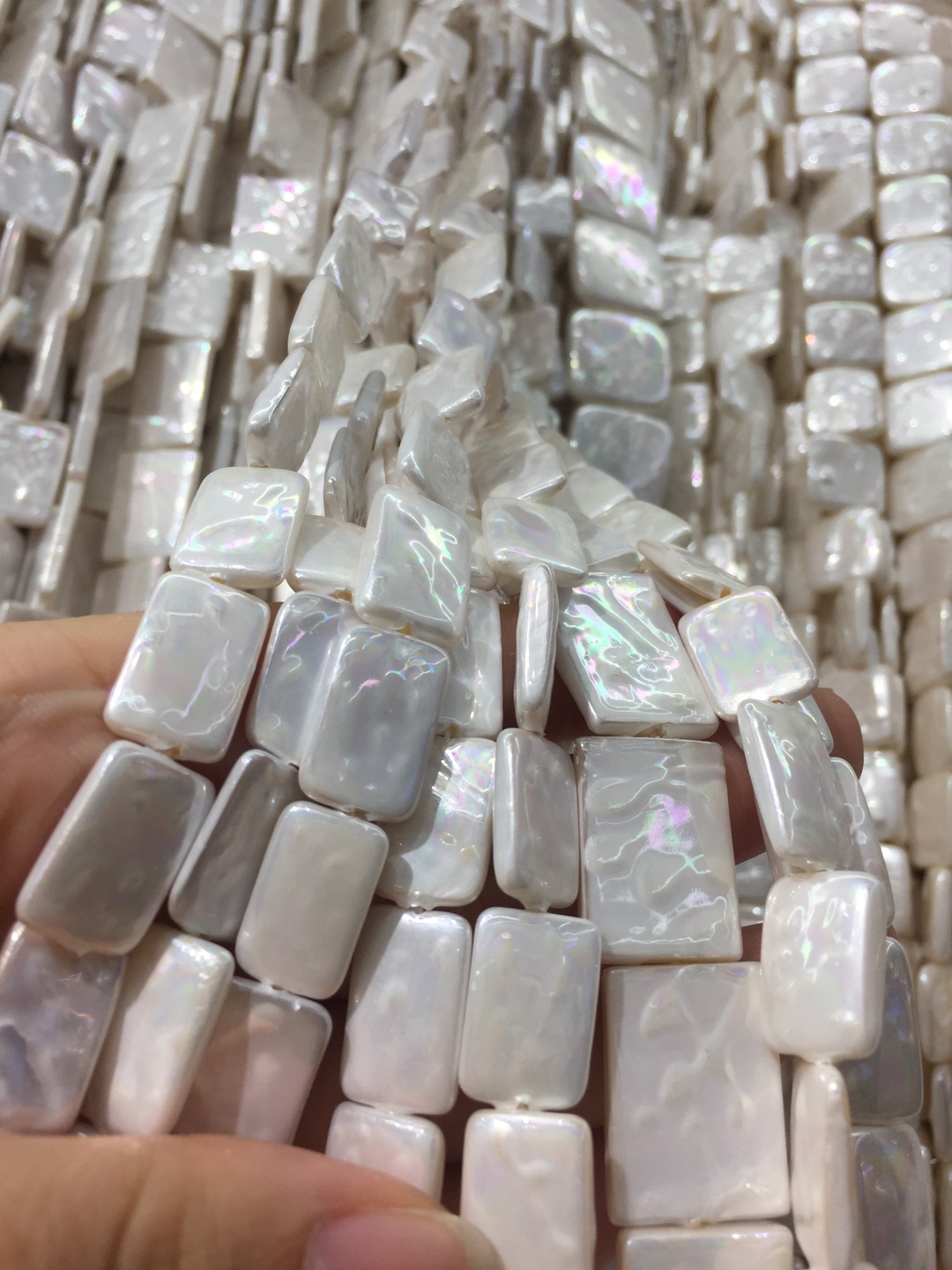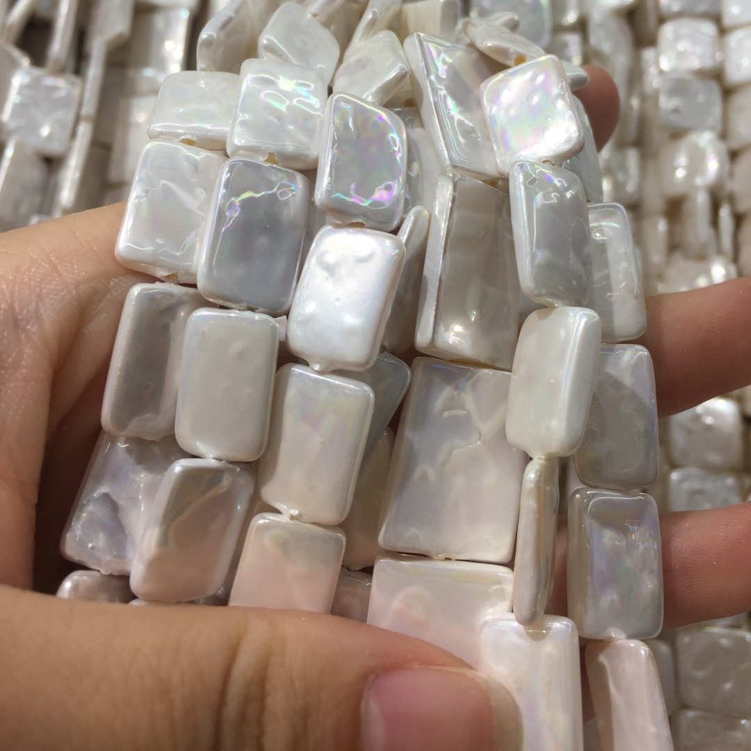 Природные стеклянные бусы, Ракушка, Прямоугольная форма, DIY, белый, 10x14mm, продается Strand