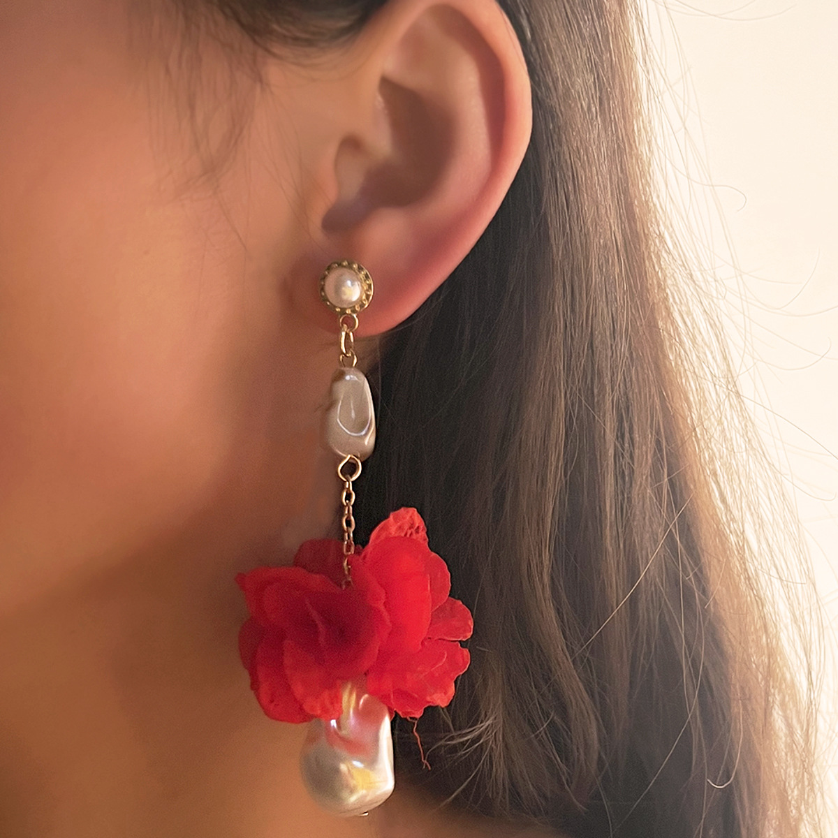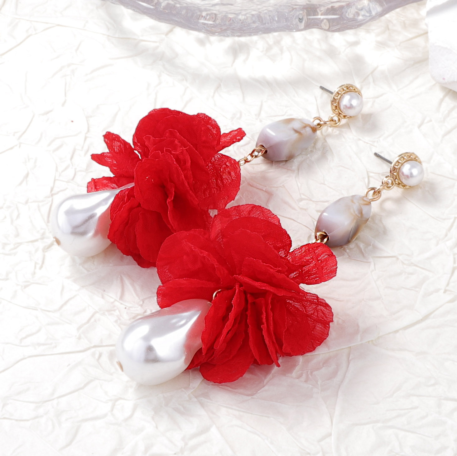 пластиковые жемчужные серьги цинкового сплава, цинковый сплав, с ткань & Пластиковая жемчужина, плакирован золотом, ювелирные изделия моды, красный, продается Пара
