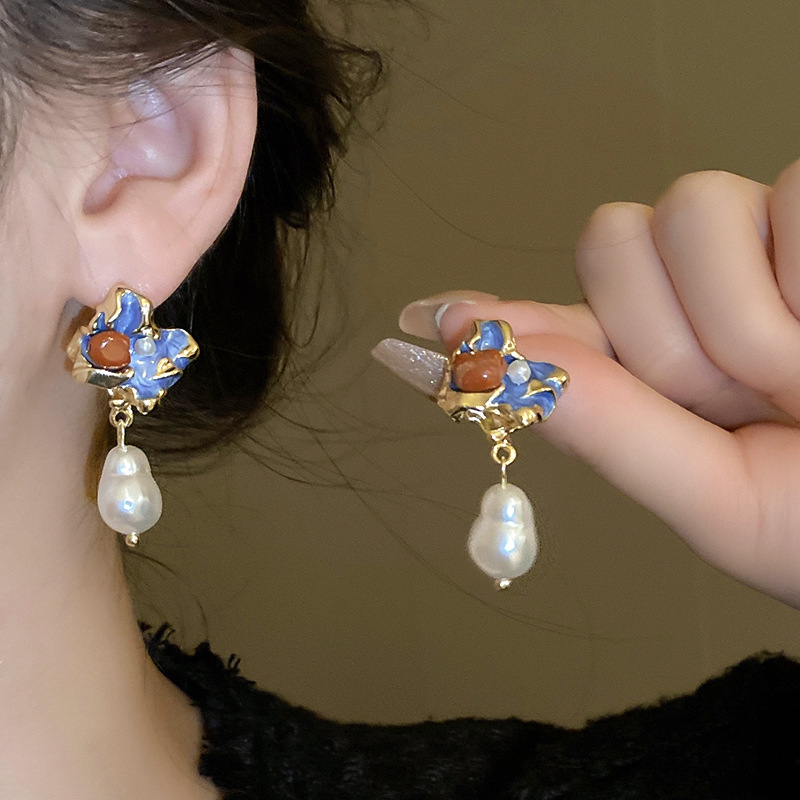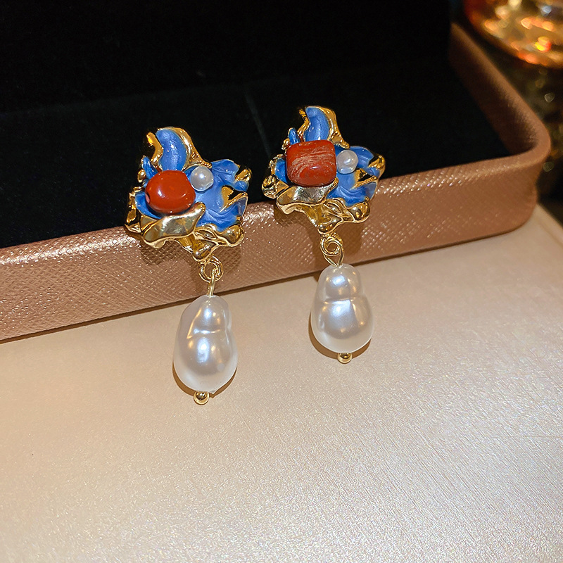 пластиковые жемчужные серьги цинкового сплава, цинковый сплав, с Пластиковая жемчужина, ювелирные изделия моды & Женский & эмаль, голубой, продается Пара