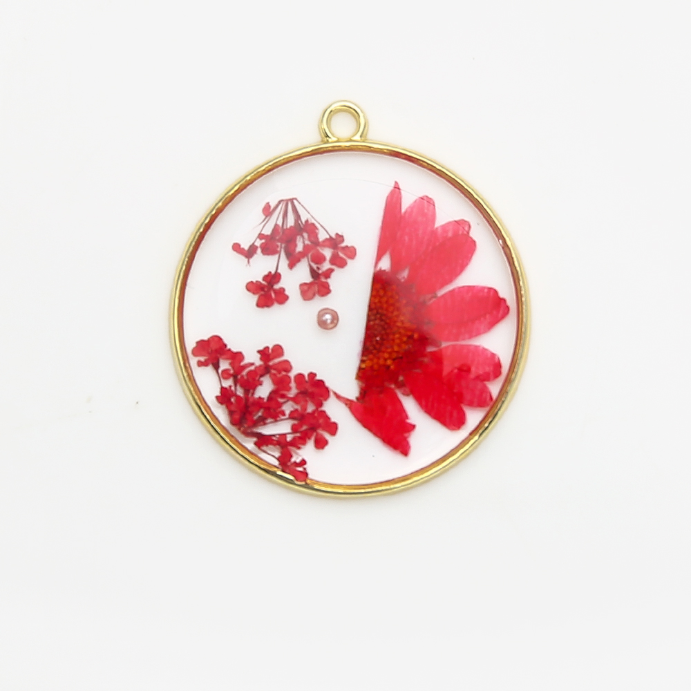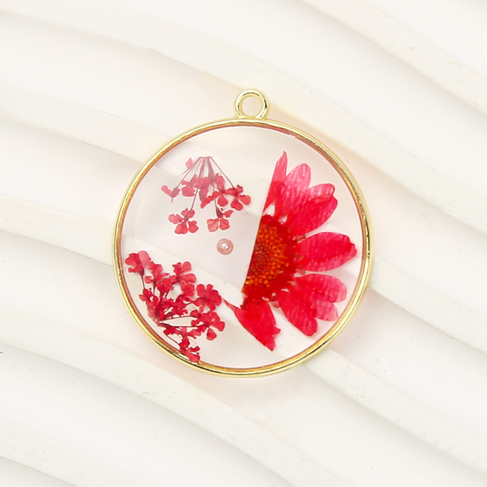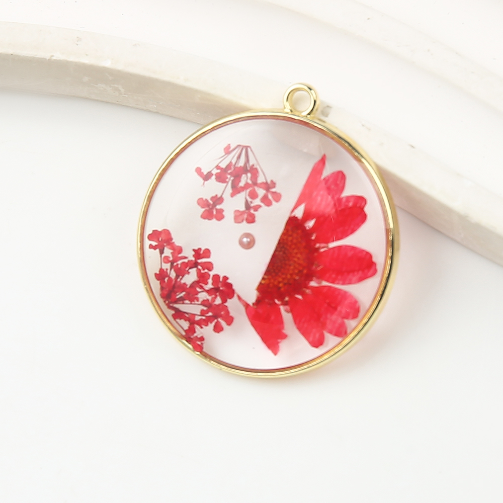 Смола латунь подвески, Латунь, с Сухих цветов & канифоль & Пластиковая жемчужина, Круглая, Другое покрытие, DIY, разноцветный, 29.63x3.17x32.87mm, продается PC