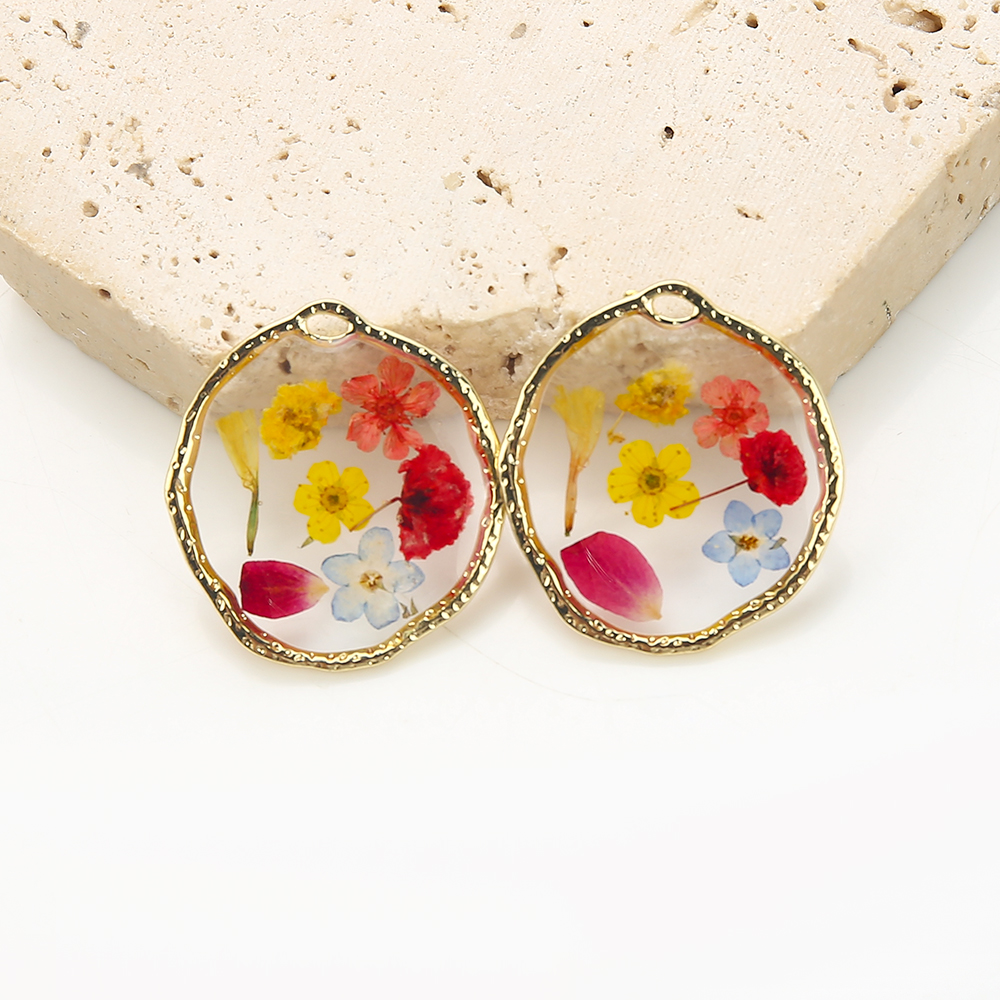 Смола латунь подвески, Латунь, с Сухих цветов & канифоль, Другое покрытие, DIY, разноцветный, 30.3x2.82x33.75mm, продается Пара
