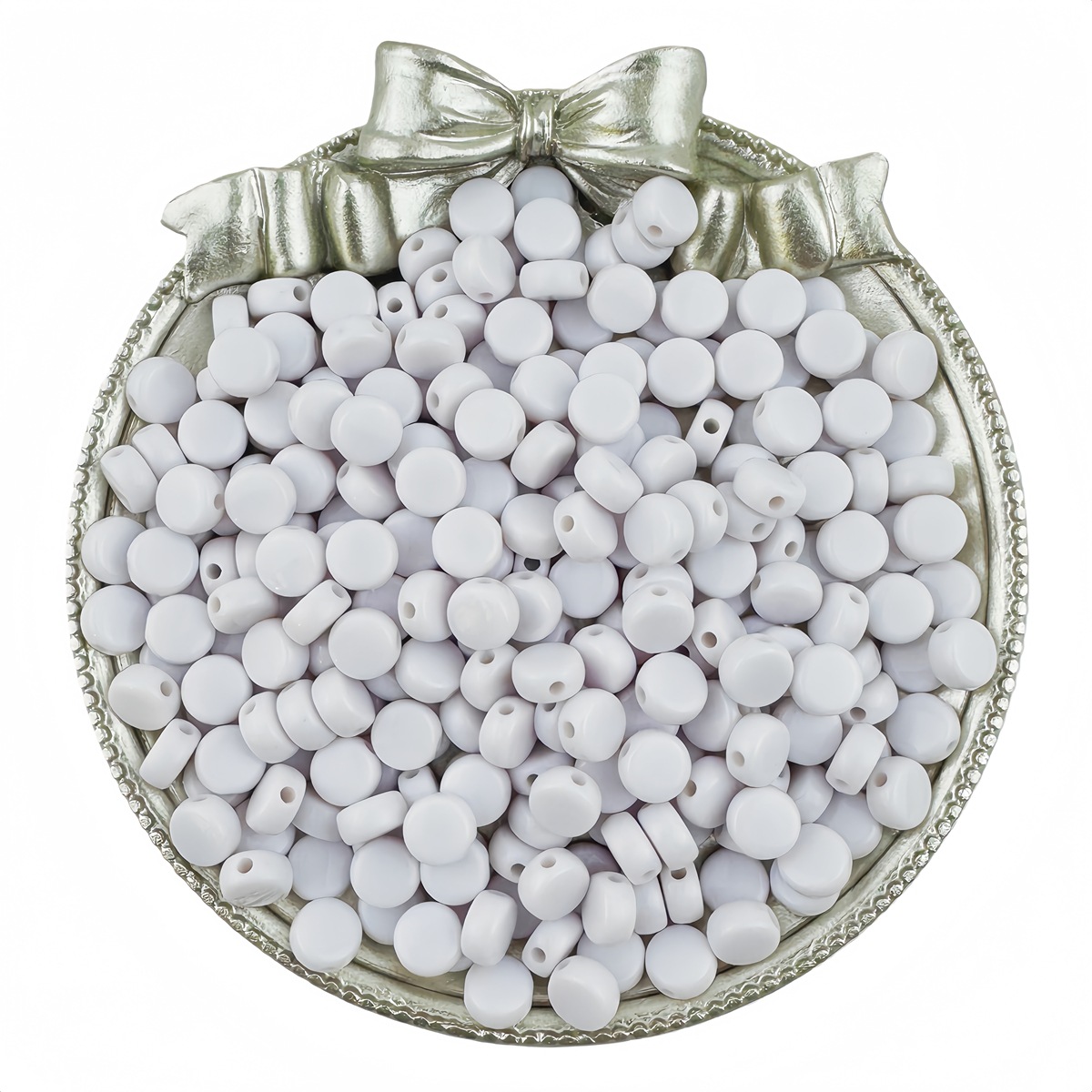 Твердые акриловые бусины, Акрил, Плоская круглая форма, DIY & гладкая, белый, 7x4mm, отверстие:Приблизительно 1mm, 100ПК/сумка, продается сумка