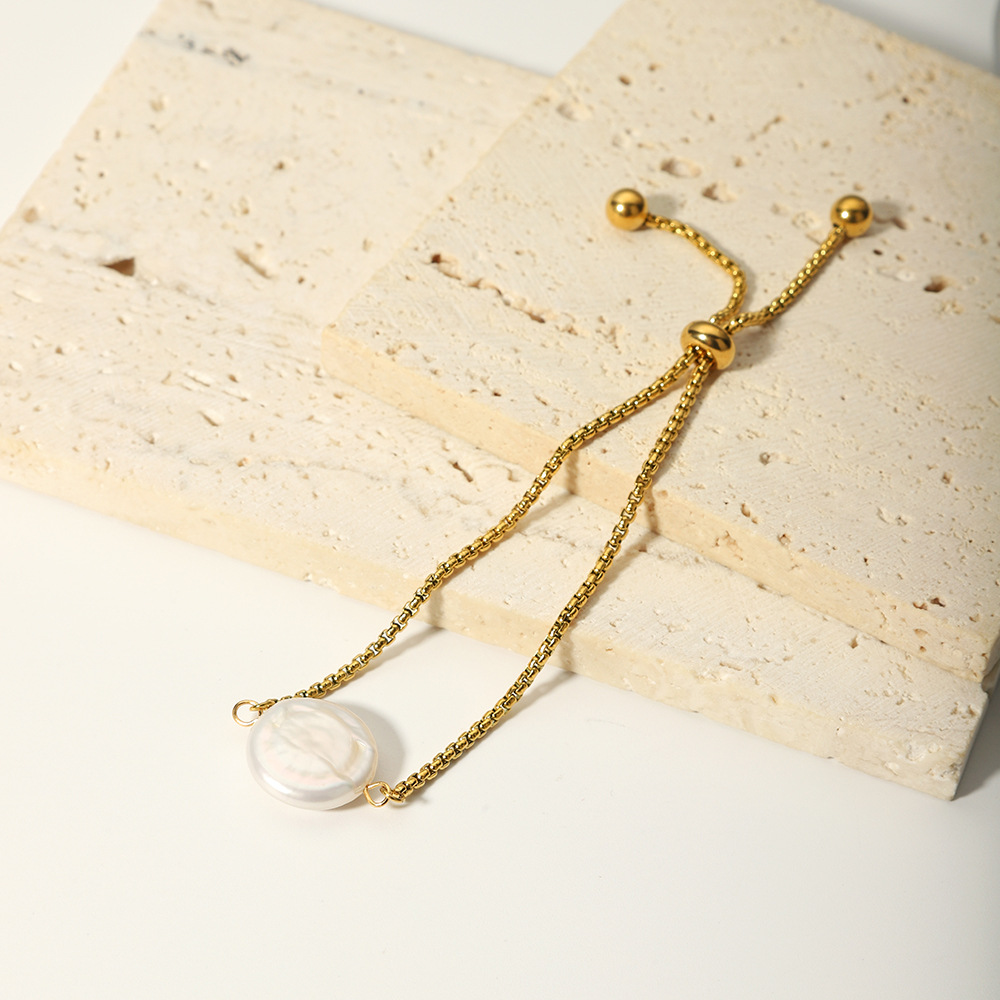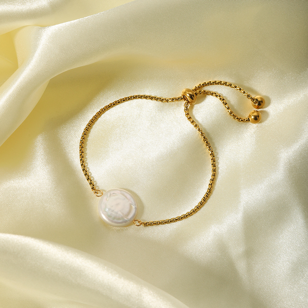 браслеты из ракушки с южного моря, Нержавеющая сталь 304, с Shell Pearl, 18K позолоченный, ювелирные изделия моды & Женский, продается PC