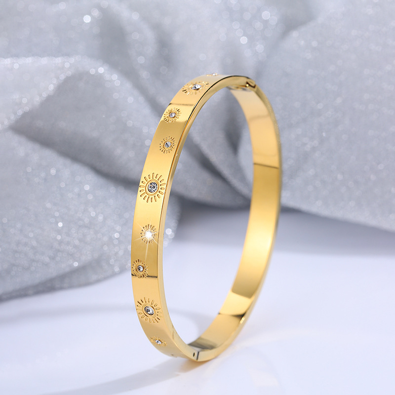 Браслет из нержавеющей стали, Нержавеющая сталь 304, 18K позолоченный, ювелирные изделия моды & Женский & со стразами, продается PC