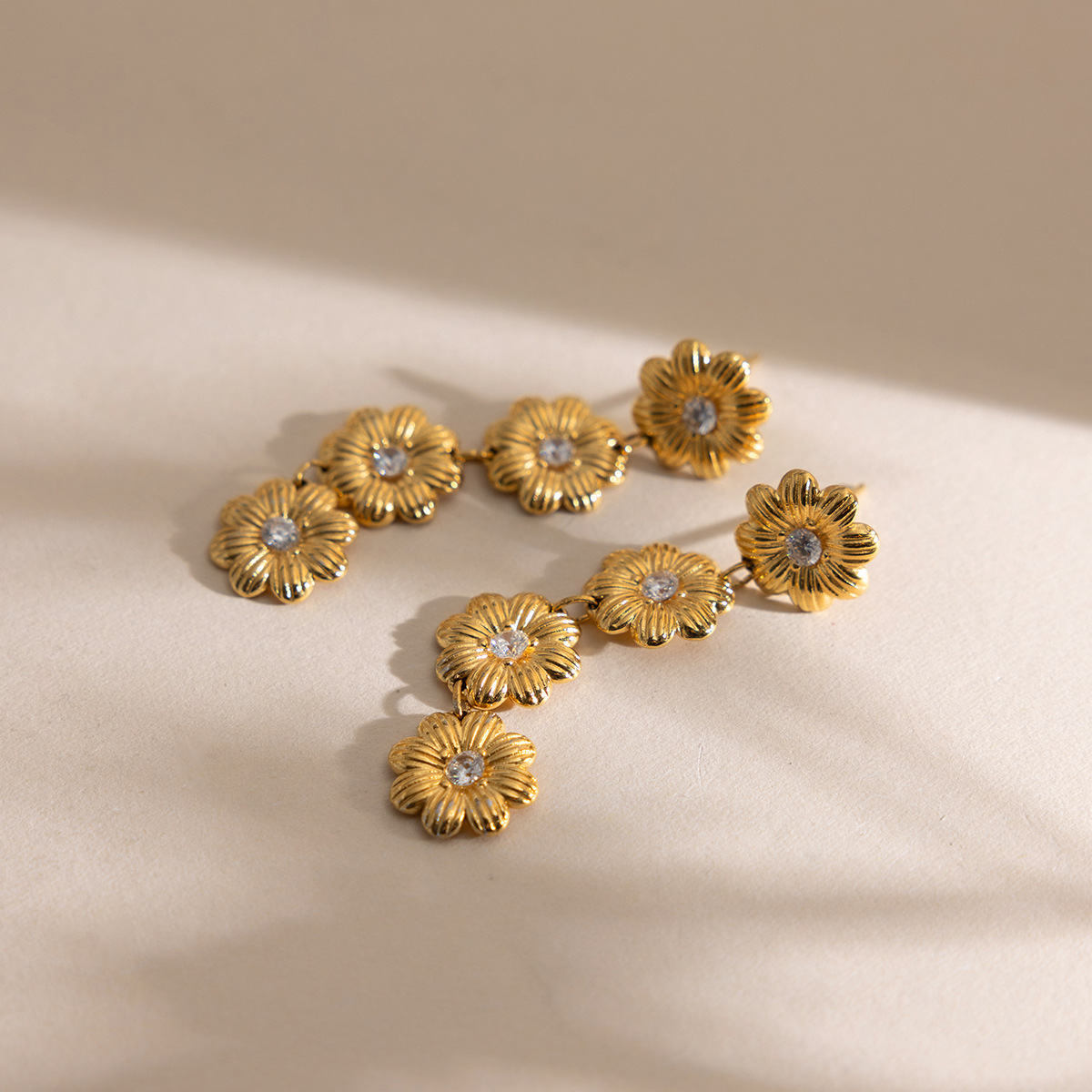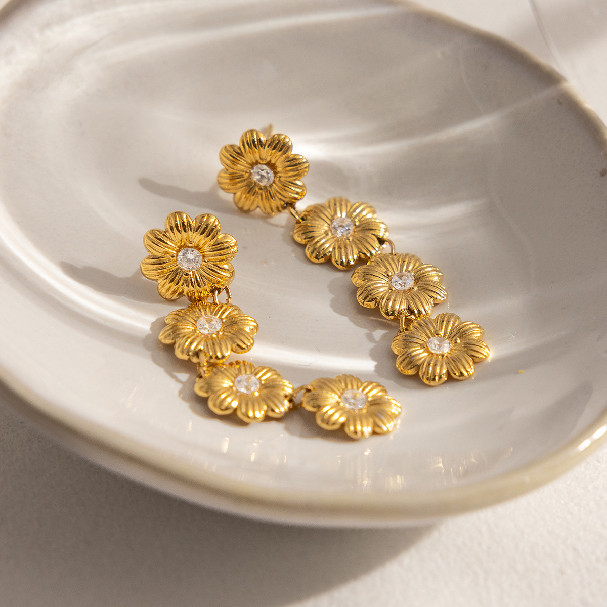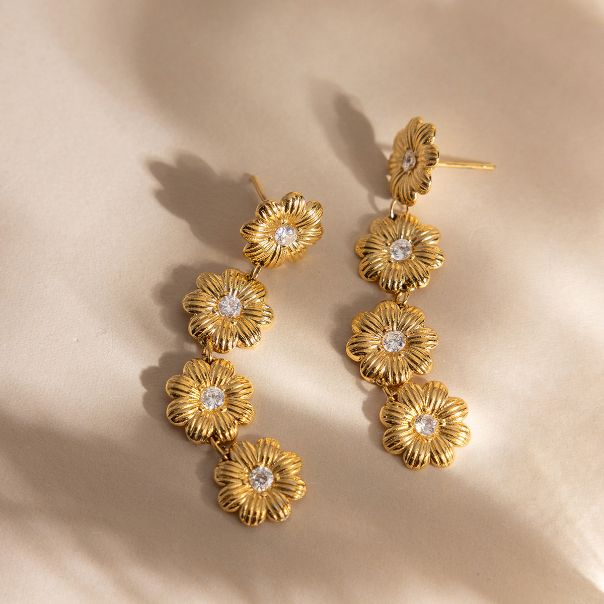 Кубический цирконий серьги из нержавеющей стали, нержавеющая сталь, маргаритка, плакирован золотом, Женский & с кубическим цирконием, 11.6x50.4mm, продается Пара