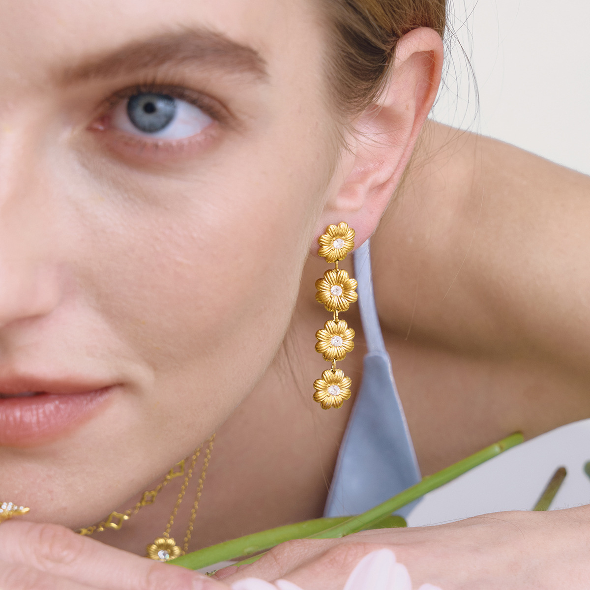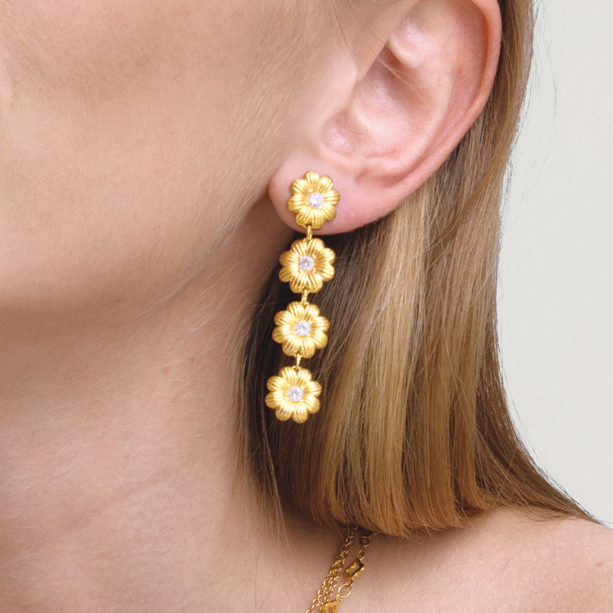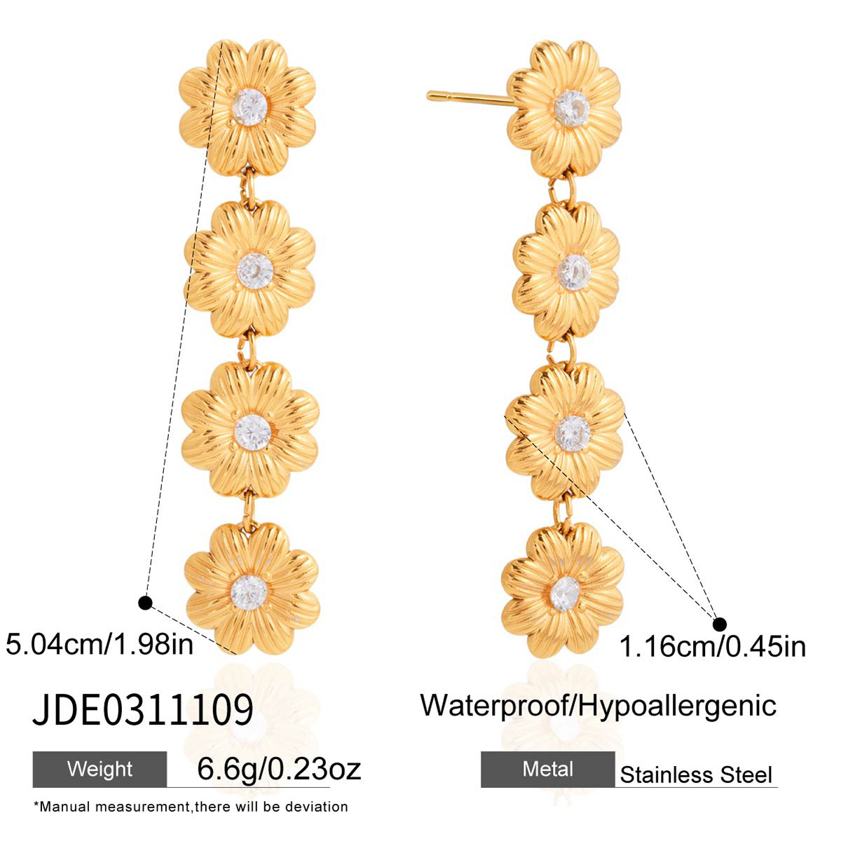Кубический цирконий серьги из нержавеющей стали, нержавеющая сталь, маргаритка, плакирован золотом, Женский & с кубическим цирконием, 11.6x50.4mm, продается Пара