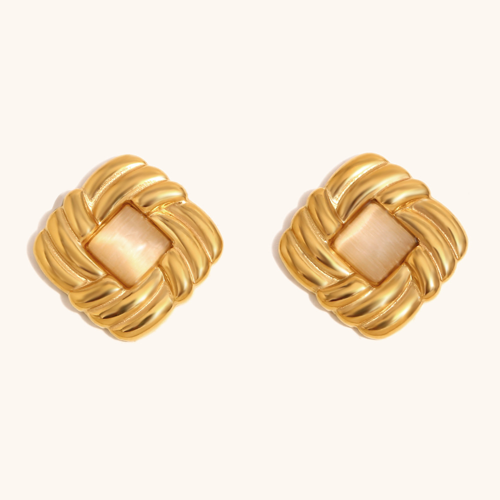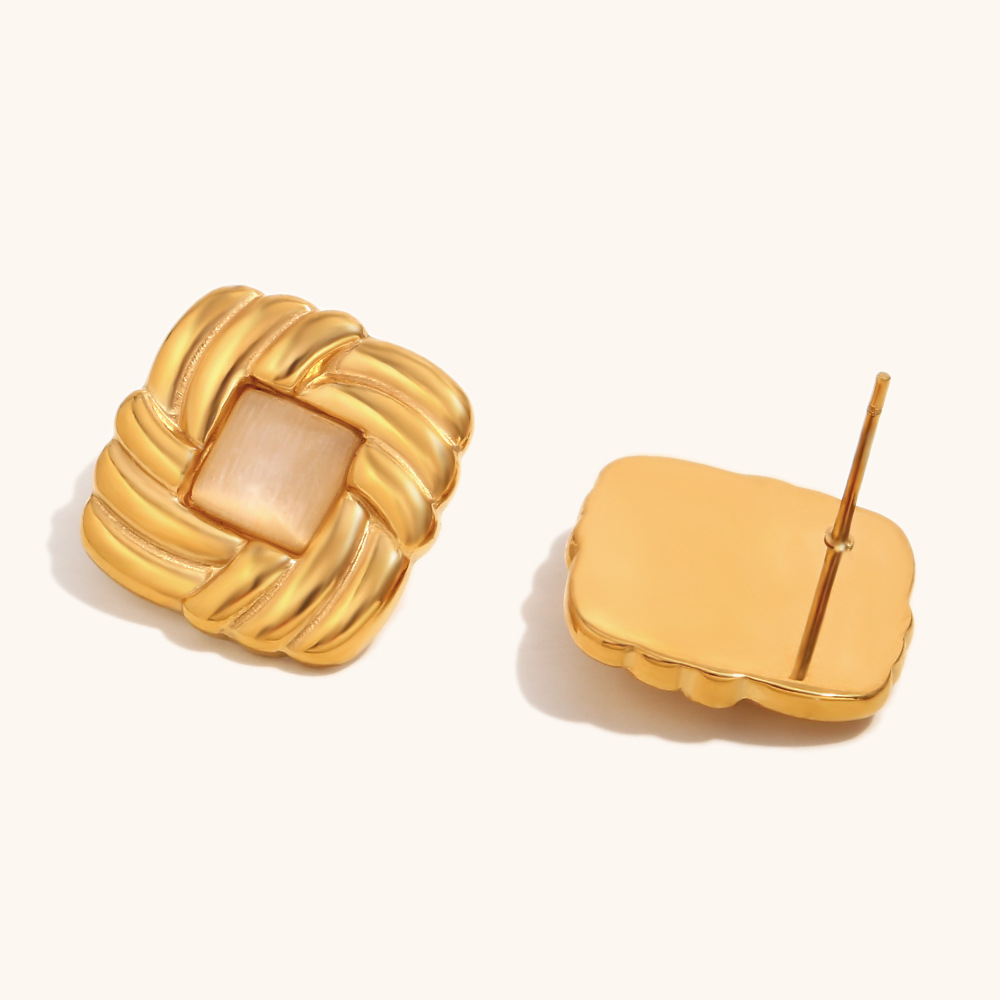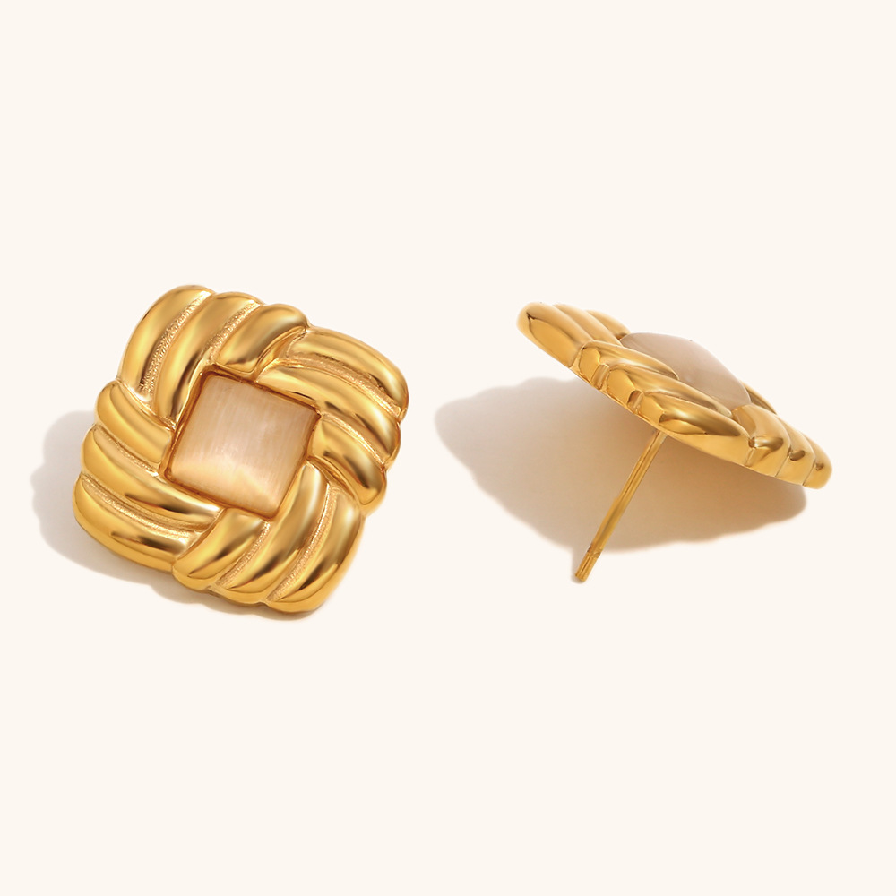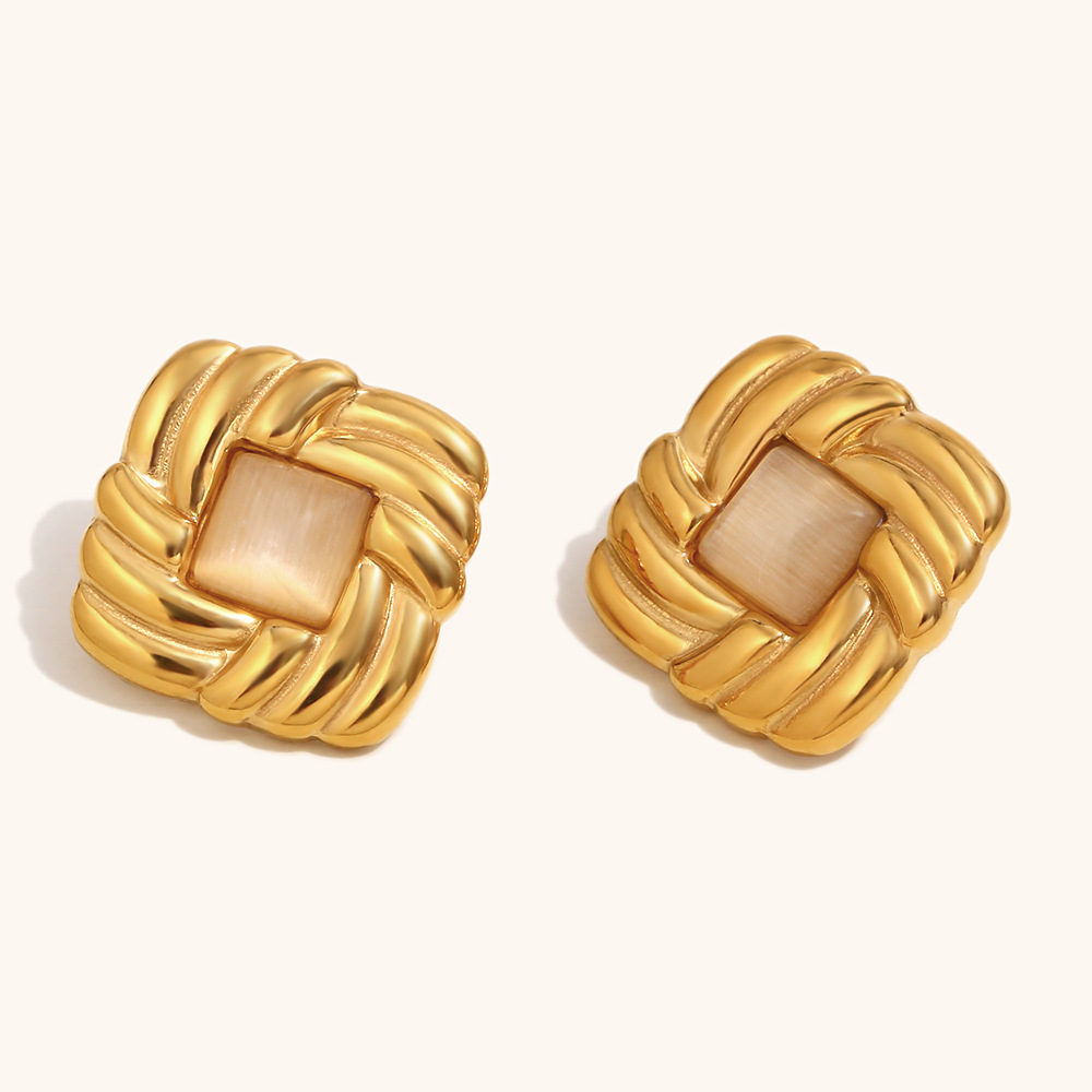 Серьги из нержавеющей стали, Нержавеющая сталь 304, с кошачий глаз, Площади, плакирован золотом, Женский, продается Пара