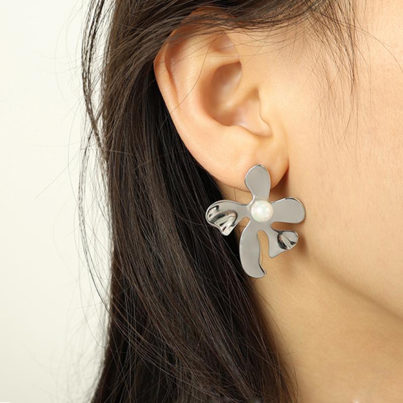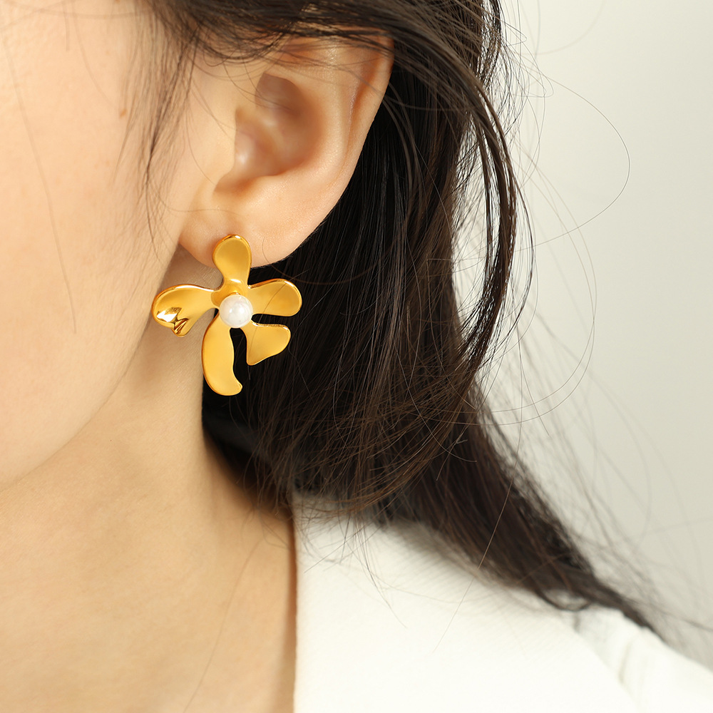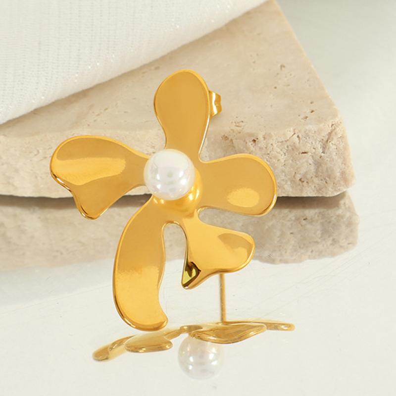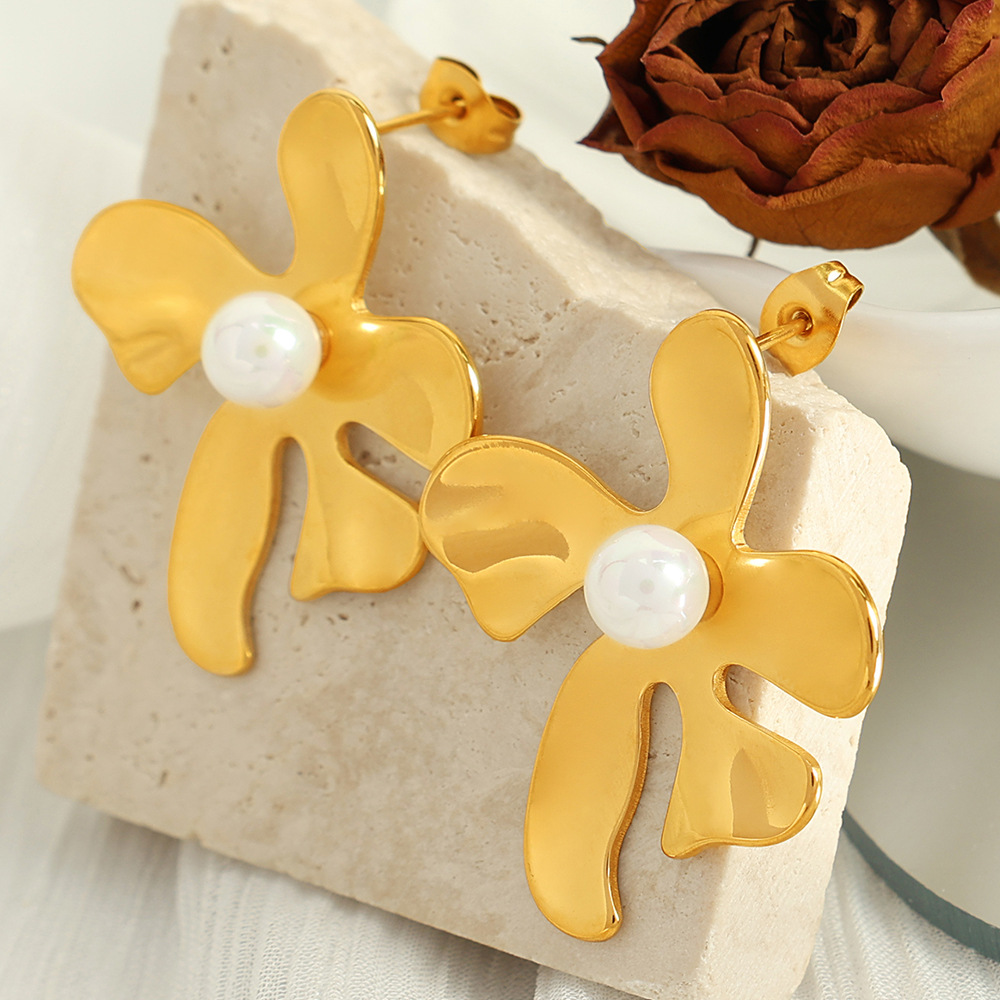Серьги из нержавеющей стали, Нержавеющая сталь 304, с Стеклянные бусины, Форма цветка, Другое покрытие, ювелирные изделия моды & Женский, Много цветов для выбора, продается Пара